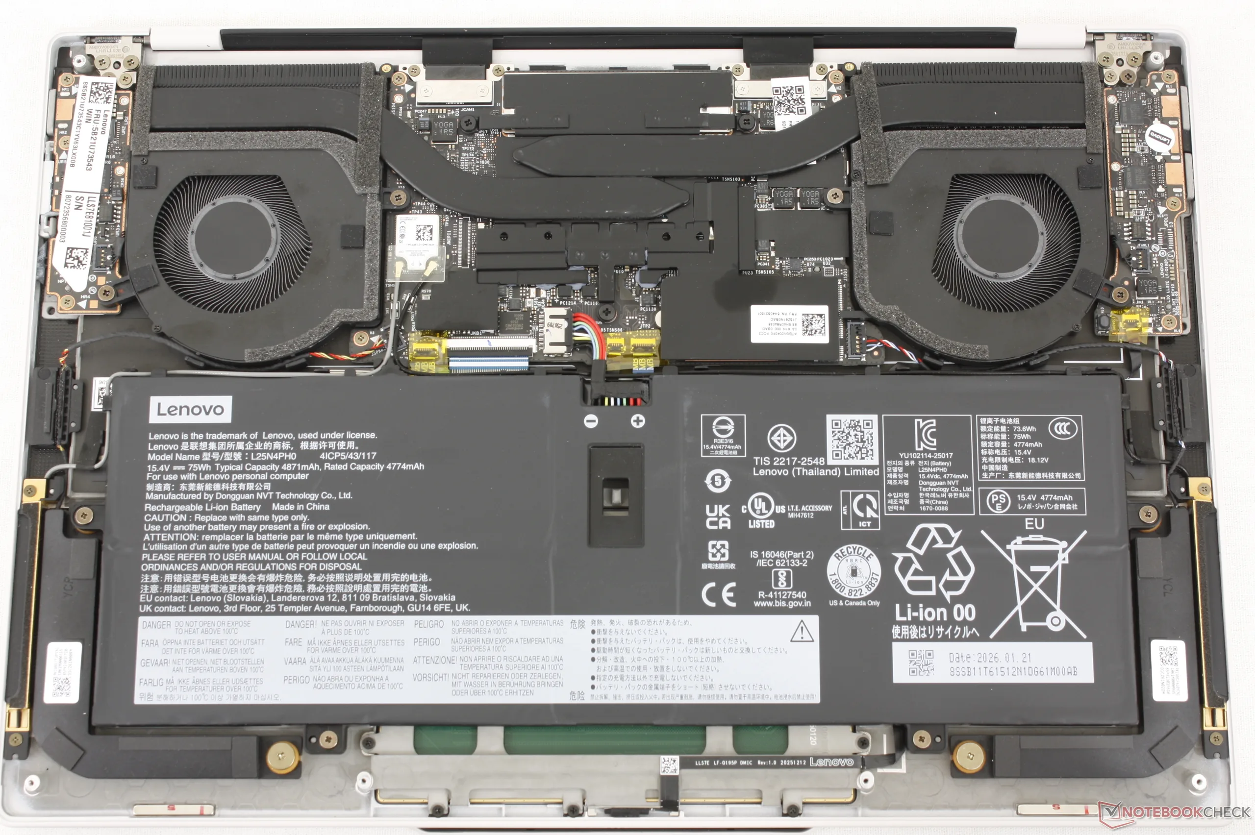 Yoga Slim 7 Ultra Aura - это прямой ответ Lenovo на обновленный Dell XPS 14. В этих моделях используются одинаковые процессоры Panther Lake и очень похожий сенсорный OLED-экран с разрешением 1800p, что обеспечивает схожий уровень производительности и впечатлений, но Lenovo заметно легче - более чем на 500 грамм. Конечно, нельзя волшебным образом сэкономить почти 35% веса без некоторых компромиссов, самыми значительными из которых являются более шумные вентиляторы, ограниченная поддержка M.2 SSD и немного более хрупкая конструкция.