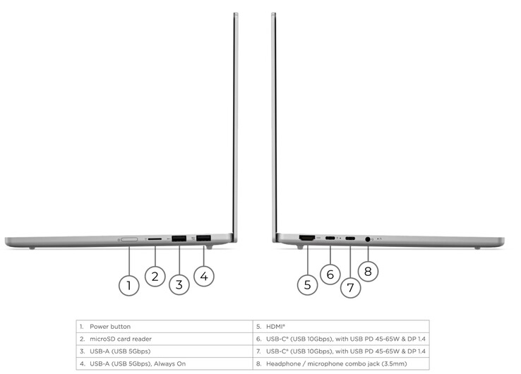 Кроме того, ноутбук оснащен батареей емкостью 54,7 Втч, поддерживающей зарядку 65 Вт, и рассчитанной Lenovo на 28 часов автономной работы при воспроизведении локального видео в формате 1080p при яркости 150 нит. Ноутбук IdeaPad Slim 5x 13Q8Y11 пока что может быть оснащен только IPS-дисплеем с разрешением 1200p, хотя Lenovo упоминает о существовании альтернативы с разрешением 1600p. Для справки, этот дисплей с разрешением 1200p охватывает 100% цветового пространства sRGB, имеет пиковую яркость 400 нит и частоту обновления 120 Гц.