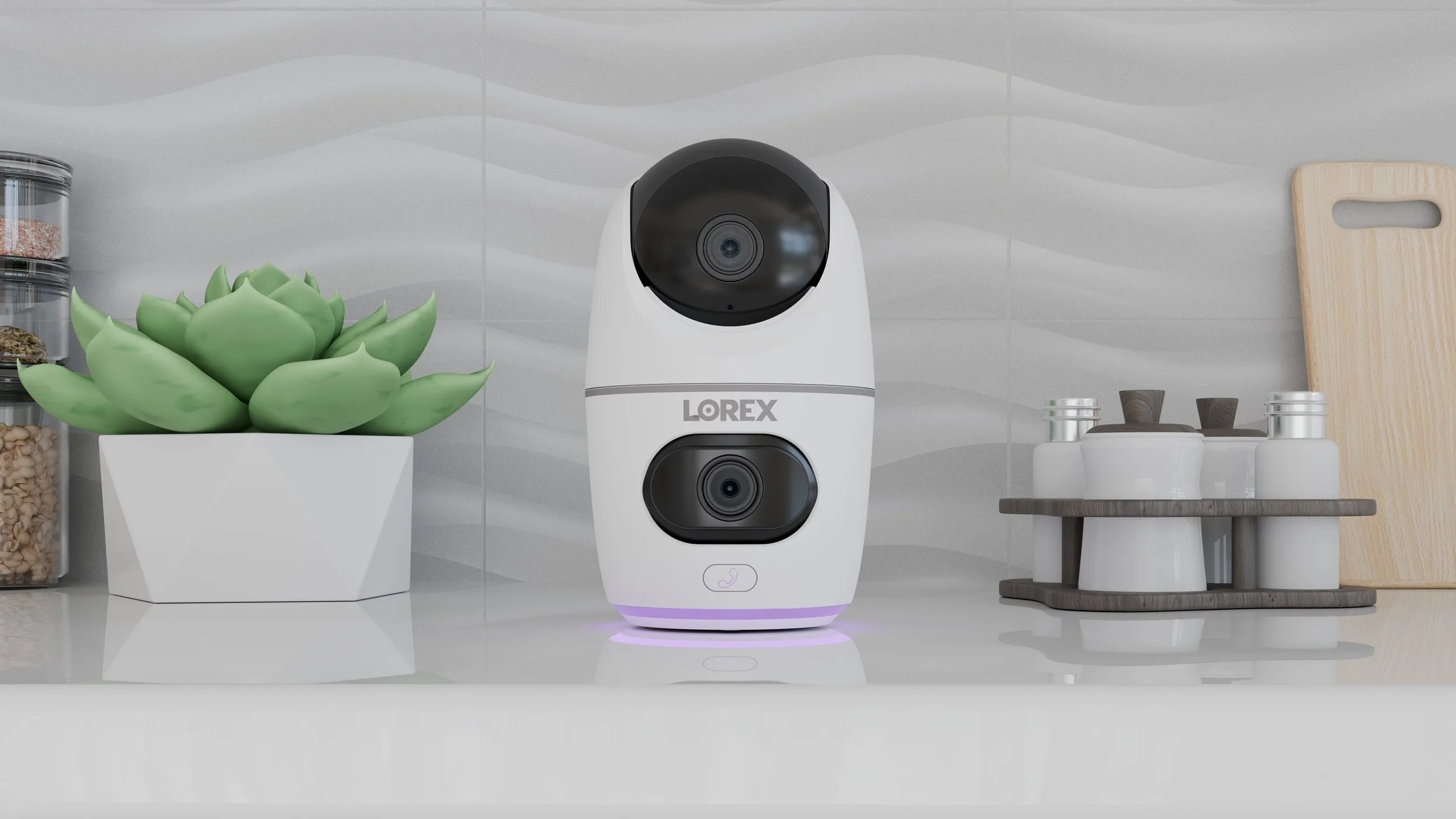 Новейшие Wi-Fi камера безопасности от Lorex обладает smarts необходимыми для того, чтобы отличать животных от людей при отправке оповещений, функцией двустороннего разговора и ночное видение как и многие другие; однако она также может следить за такими объектами, как дети, продолжая при этом сканировать"каждый уголок" комнаты с помощью своих двойных объективов.