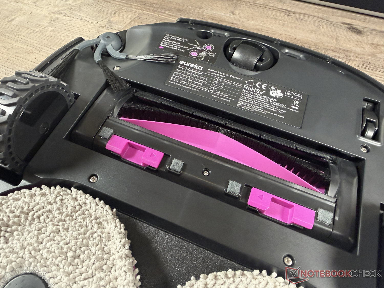 Для уборки Eureka полагается на две вращающиеся швабры, которые используются в ее флагманской модели. В настоящее время эта технология уборки вытеснена валиком для швабры, который теперь используется даже во многих значительно более дешевых и новых роботах-пылесосах среднего класса, таких как Ecovacs Deebot T90 Pro Omni или Mova S70 Roller. Повседневная грязь была собрана настолько, насколько это было возможно. Однако, как и многие другие модели с этой технологией уборки, робот достигает предела своих возможностей с засохшими пятнами - даже после многократной уборки. Многие модели швабр с роликом здесь превосходят все остальные. Производительность достаточна для ежедневной уборки.