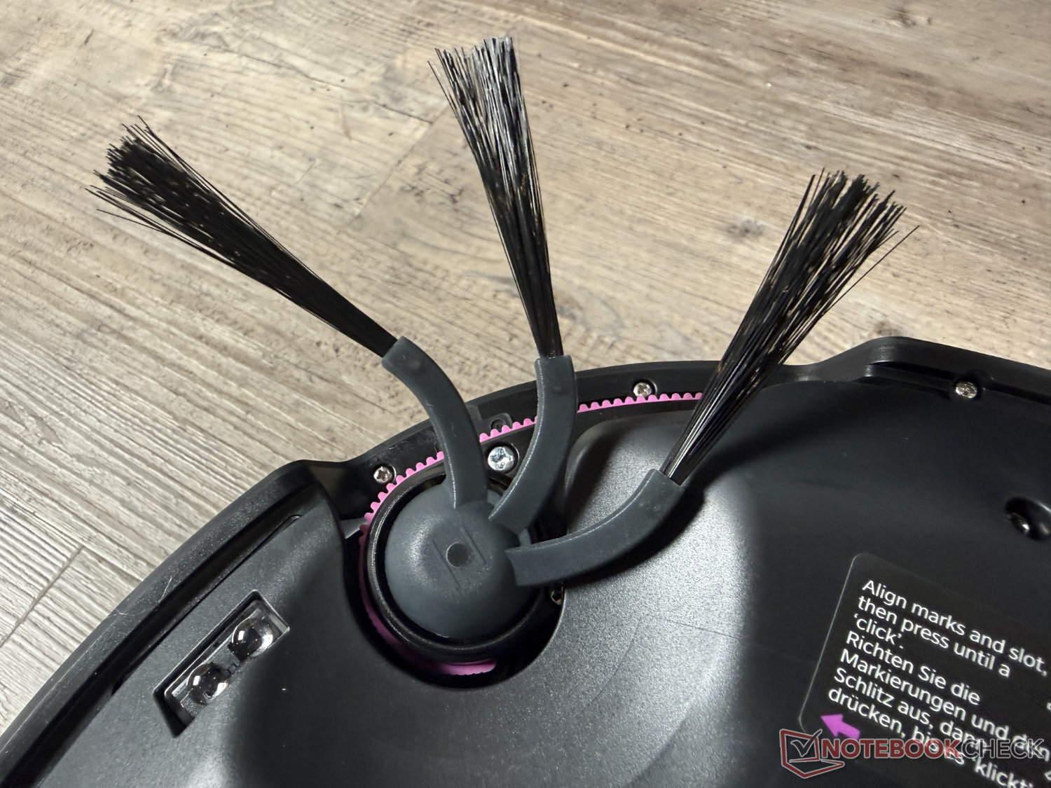 Уборка углов с помощью выдвижной боковой щетки прошла хорошо, если не считать небольшого количества песчинок. Выдвижная швабра также в основном убирала довольно близко к плинтусам, мебели и т.п. Здесь мало что можно покритиковать. То же самое относится и к функции защиты от спутывания волос, которая работает надежно и активируется, когда Вы возвращаетесь на станцию. Кстати, он также очищает себя сам, что работает хорошо.