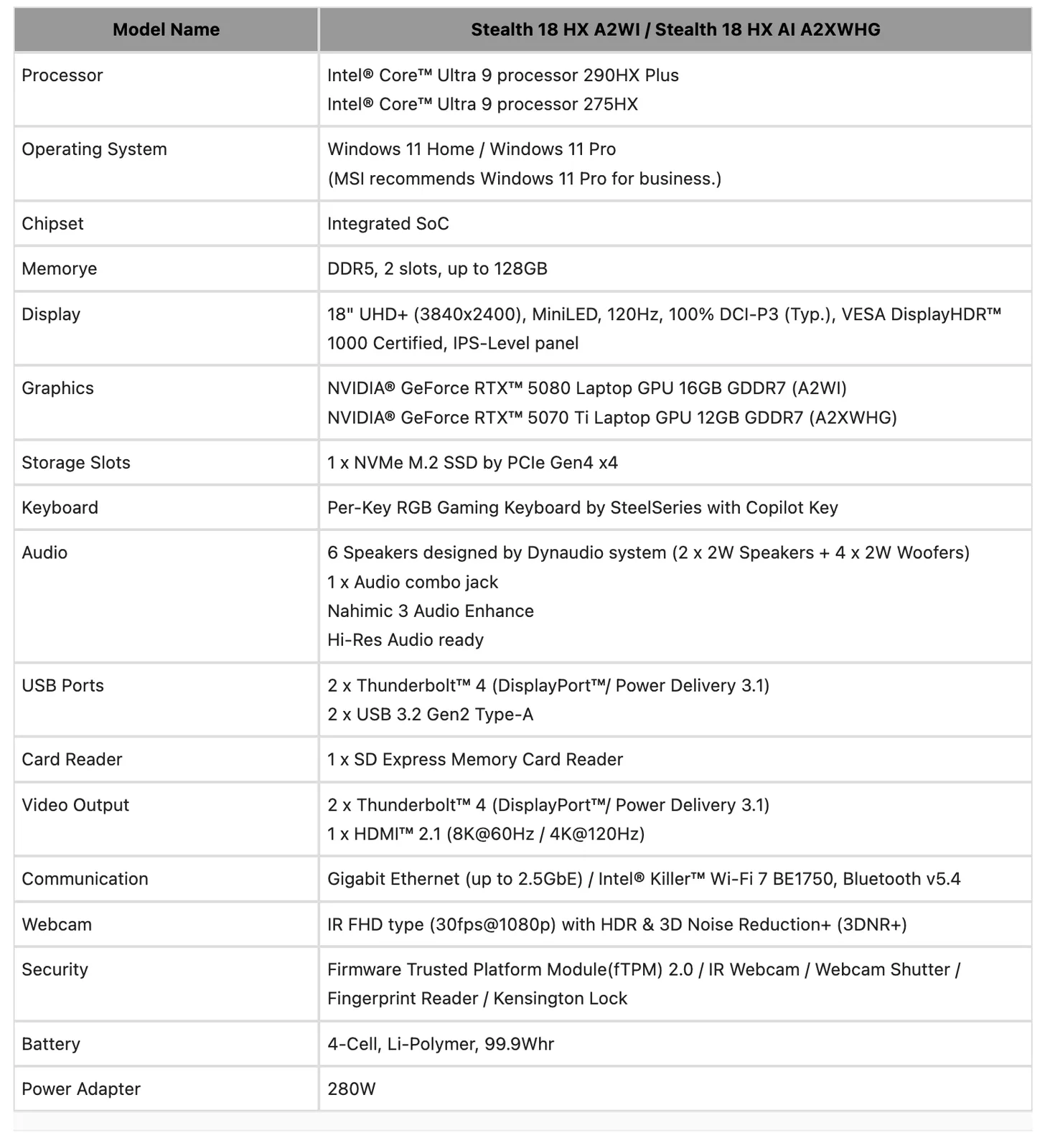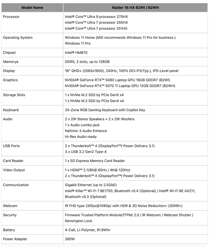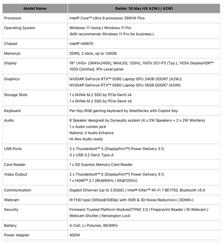 Теперь к ним присоединилась компания MSI, представив восемь новых ноутбуков в сериях Raider и Stealth Titan. В частности, компания представила следующие ноутбуки, оснащенные Core Ultra 9 290HX Plus процессорами: