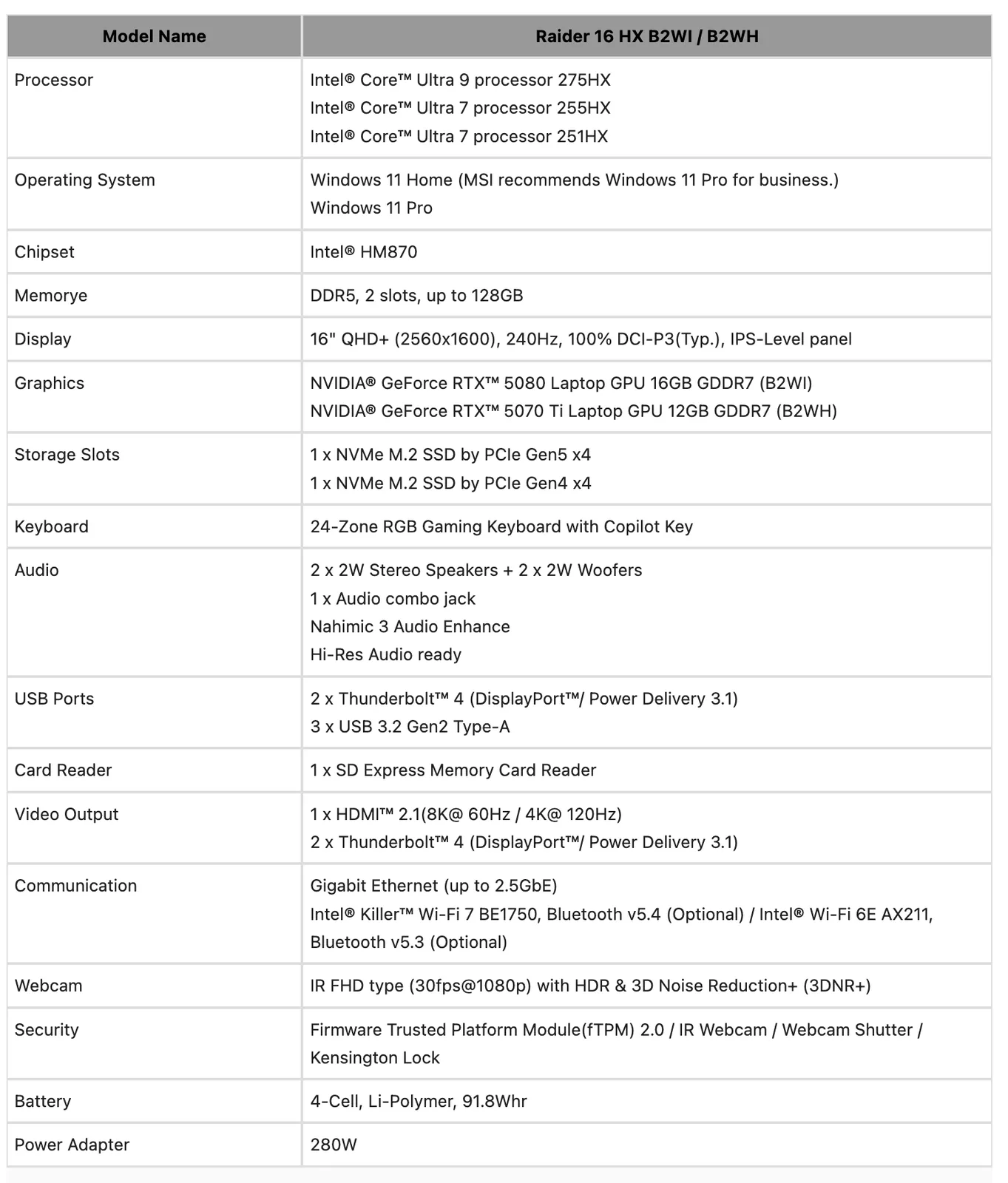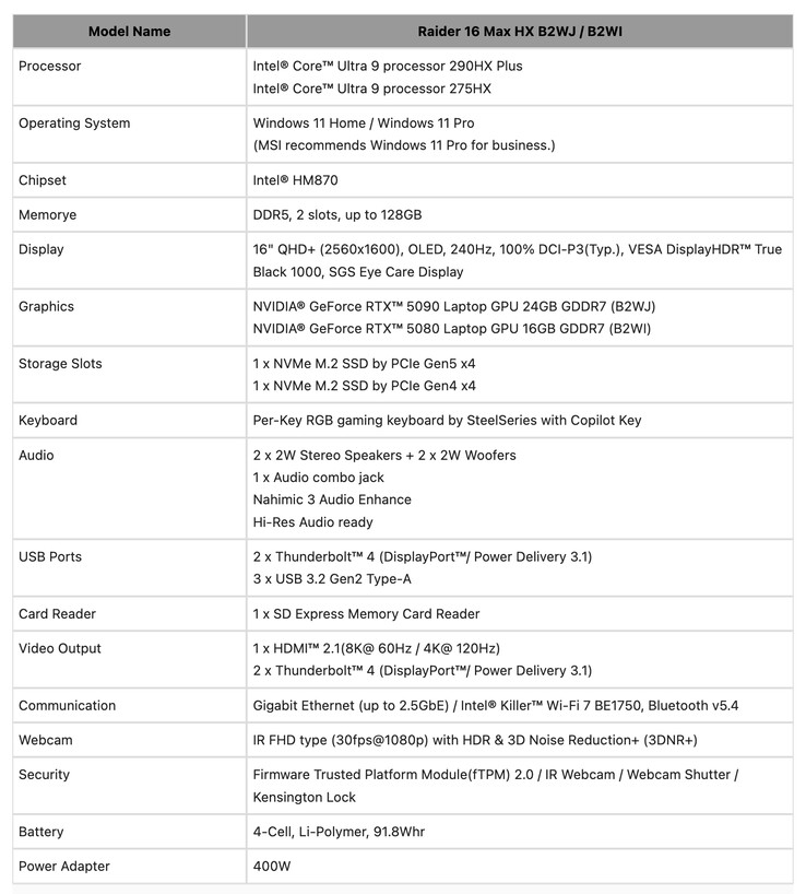 - Raider 16 Max HX B2WI