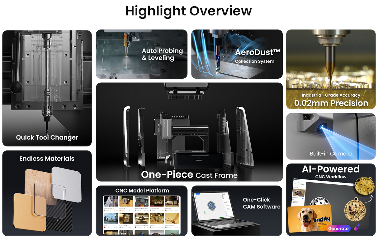 Z1 также будет доступен с дополнительным комплектом для 4-й оси и модулем мощностью 5 Вт - это те же системы, что используются в Carvera Air и полнофункциональном Carvera CNC, что позволит будущим производителям вложить средства в модернизацию своих станков, которая расширит их возможности. Кроме того, Z1 совместим с обновленным собственным CAM-программным обеспечением Makera, которое теперь, очевидно, станет Makera Studio, а управлять станком можно через приложение Makera App (ранее Makera Controller), работающее под Windows, Linux, macOS, iOS или Android.
