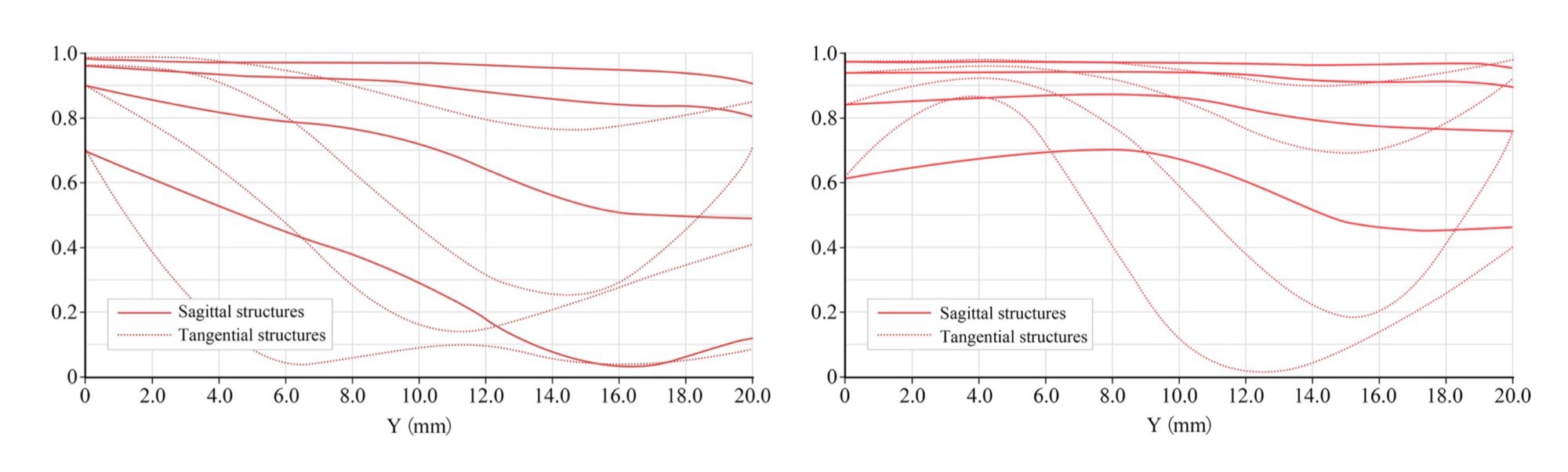 Конструкция из семи элементов в пяти группах была немного обновлена, чтобы обеспечить лучшее качество изображения в паре с цифровыми сенсорами. Однако, как показывают кривые MTF, представленные производителем, объектив, как и оригинал, имеет ярко выраженную кривизну поля, поэтому центр изображения и углы получаются более резкими, чем область между ними. Даже в центре объектив не отличается особой резкостью при использовании широкоугольного объектива.