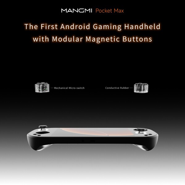 Опубликовав на своих каналах в социальных сетях, компания Mangmi сообщила, что Pocket Max будет оснащен модульными магнитными кнопками. На прилагаемом изображении Mangmi Pocket Max показан со снятыми кнопками D-Pad и ABXY. Такая конструкция позволит пользователям менять любой из элементов управления на другой тип, например, менять расположение кнопок ABXY или устанавливать тачпад вместо D-Pad.
