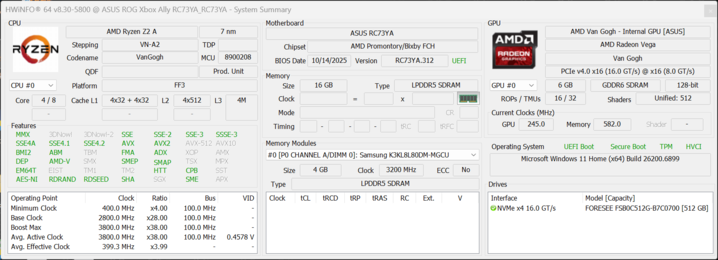 Ryzen Z2 A основан на более старой архитектуре Zen 2 и работает в паре с 16 ГБ оперативной памяти в Xbox Ally. На нашем тестовом устройстве 6 ГБ этой памяти по умолчанию было отведено под встроенный графический процессор RDNA 2, хотя это можно настроить в программе Armoury Crate SE.