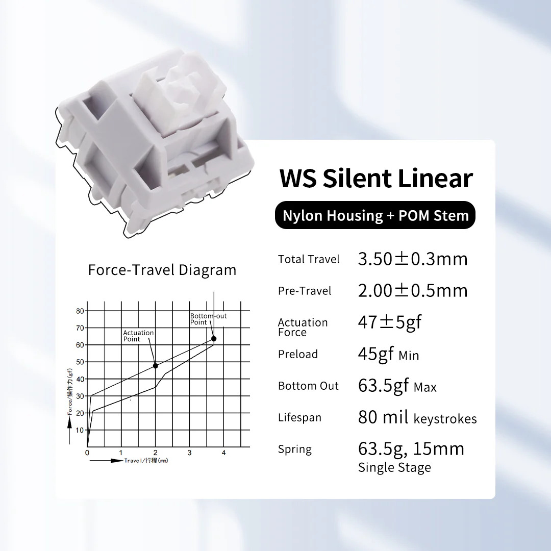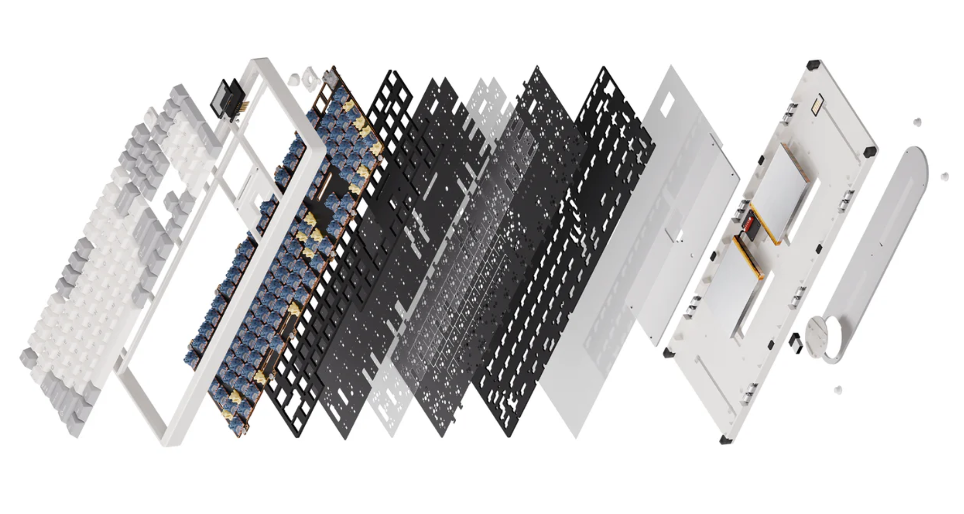 В качестве напоминания, ND104 построен в полностью алюминиевом корпусе, имеет трехрежимное подключение (USB-C, Bluetooth 5.4 и беспроводное 2,4 ГГц), а также включает встроенную клавишу калькулятора и дисплей над нумпадом. В ней также используются переключатели WS Breeze и Silent Linear (см. ниже) для более тихой работы, а для снижения уровня шума предусмотрено несколько внутренних демпфирующих слоев. Клавиатура также имеет некоторые модульные элементы конструкции, включая ЖК-дисплей, клавиши и ручку, которые можно снимать/заменять в соответствии с предпочтениями пользователя.