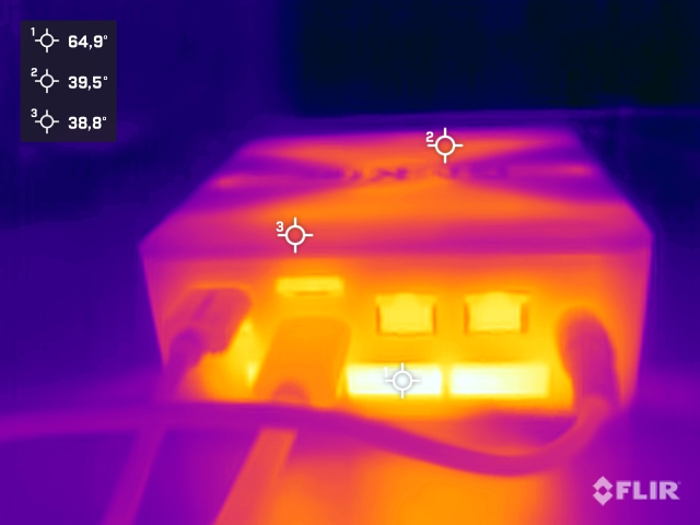 (+) При отсутствии вычислительной нагрузки верх корпуса нагревается в среднем до 30.9 град. Типичное значение для устройств этого же класса = 32.3 градуса (-ов).
