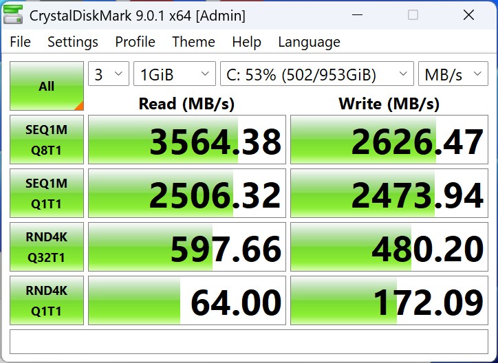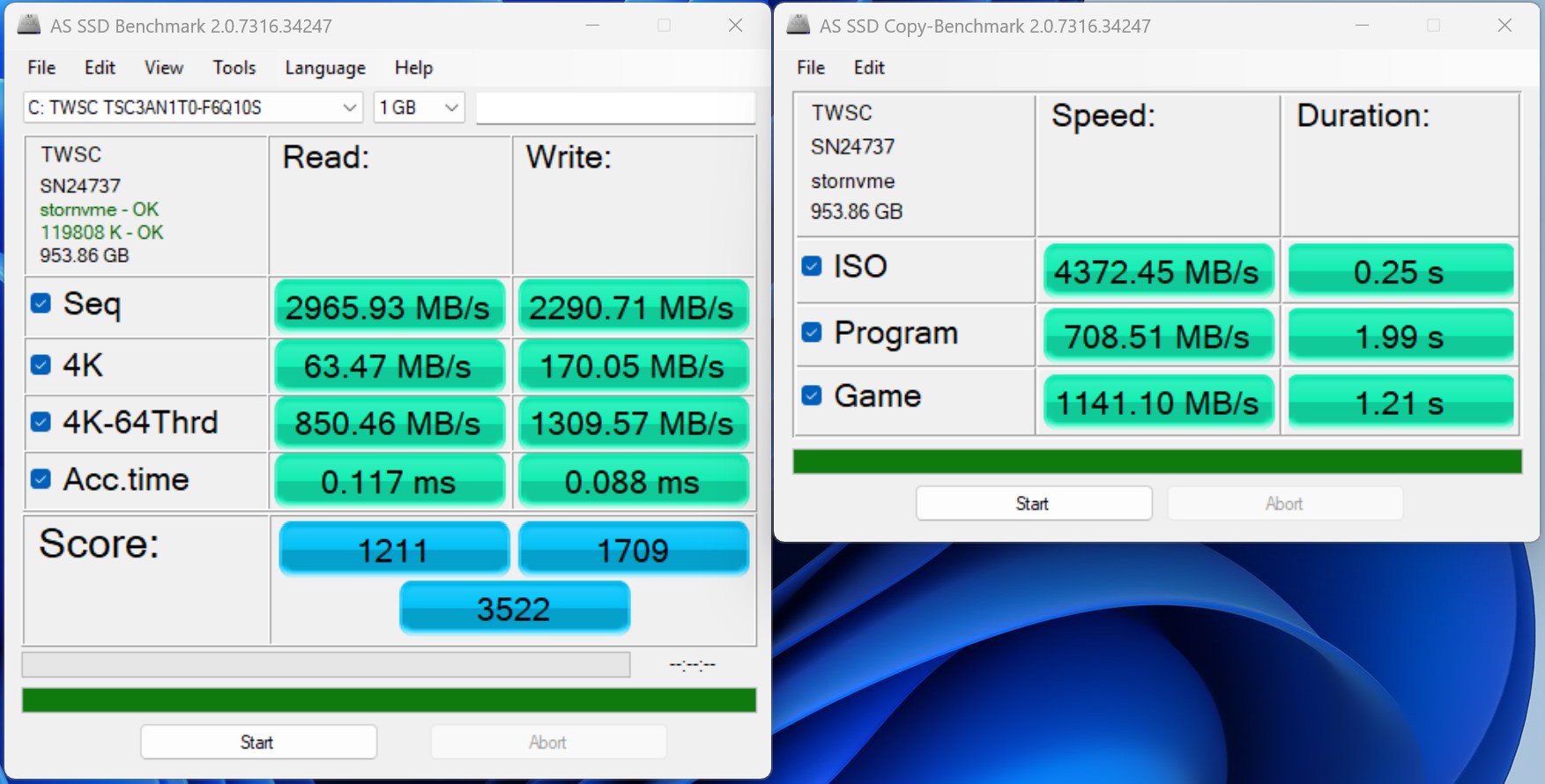 В GMKtec NucBox M6 Ultra установлен SSD-накопитель объемом 1 ТБ от TWSC. Устройство хранения данных работает с интерфейсом PCIe 3.0 x4 и обеспечивает достойную скорость передачи данных, достаточную для повседневного использования. Активный блок охлаждения обеспечивает достаточное охлаждение под нагрузкой, поэтому снижения производительности ожидать не стоит. В мини-ПК также предусмотрено место для дополнительного твердотельного накопителя M.2 2280.
