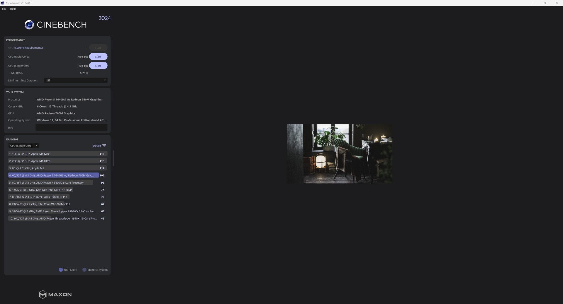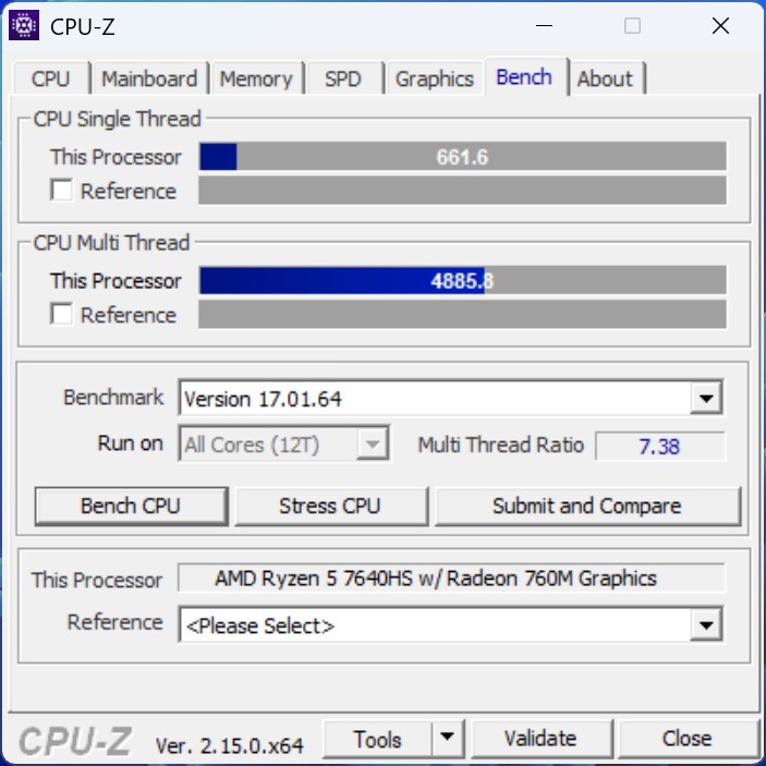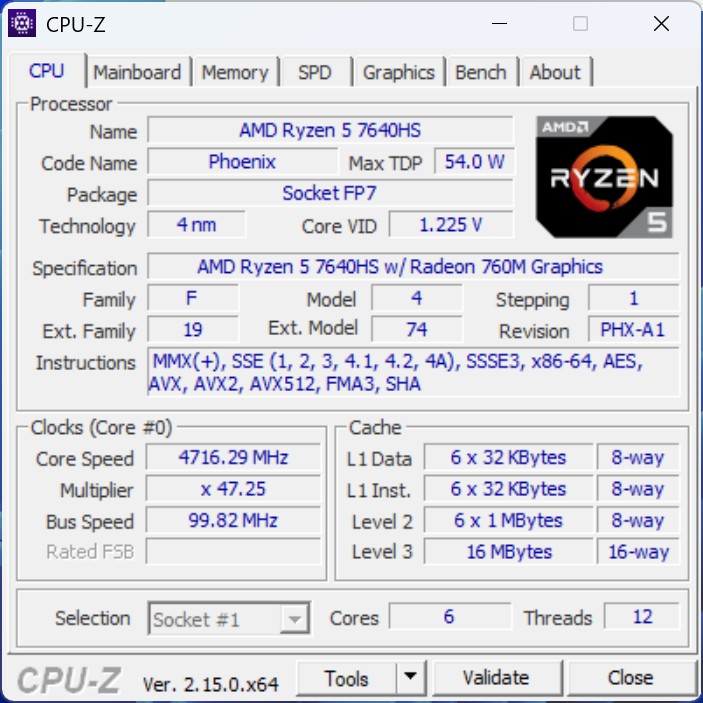 AMD Ryzen 5 7640HS в GMKtec NucBox M6 Ultra - это 6-ядерный процессор на базе архитектуры Zen 4, который обеспечивает высокую производительность как в одноядерных, так и в многоядерных сценариях. С помощью этого процессора GMKtec позиционирует свои мини-ПК в нижнем сегменте среднего класса и может сравниться по производительности с Intel Core i9-12900HK в BMAX B9 Power но может и превзойти его.
