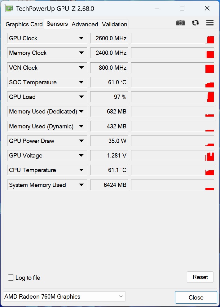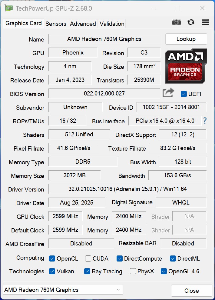 GMKtec NucBox M6 Ultra полагается на встроенный AMD Radeon 760M, который обеспечивает достойную производительность iGPU в повседневном использовании. Он достигает хороших результатов в синтетических бенчмарках, занимая место в середине таблицы. В практических игровых тестах iGPU работает адекватно, хотя это очень зависит от игры. Однако Radeon 760M явно проигрывает более мощным интегрированным графическим процессорам, таким как AMD Radeon 890M или даже Radeon 8060S.