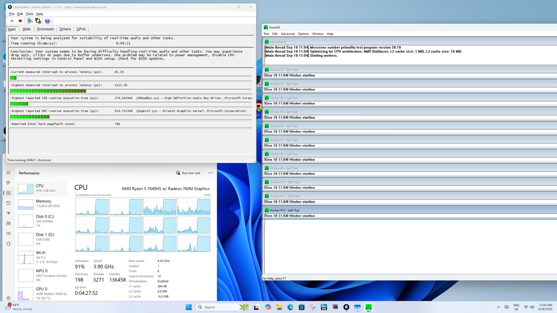 DPC Latencies / LatencyMon - interrupt to process latency (max), Web, Youtube, Prime95 | |