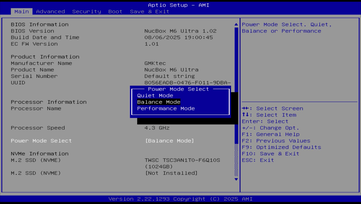 Тестирование проводилось в сбалансированном режиме (45 Вт), установленном на заводе. В BIOS также доступны режим производительности (50 Вт) и бесшумный режим (35 Вт).