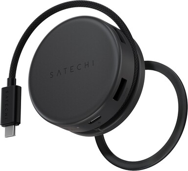 Как следует из названия, Satechi OntheGo 7-in-1 USB-C Hub - это компактный USB-C концентратор для мобильного использования, который может похвастаться несколькими уникальными особенностями. Одна из них - довольно необычный дизайн. Семь портов расположены по периметру круглого устройства.