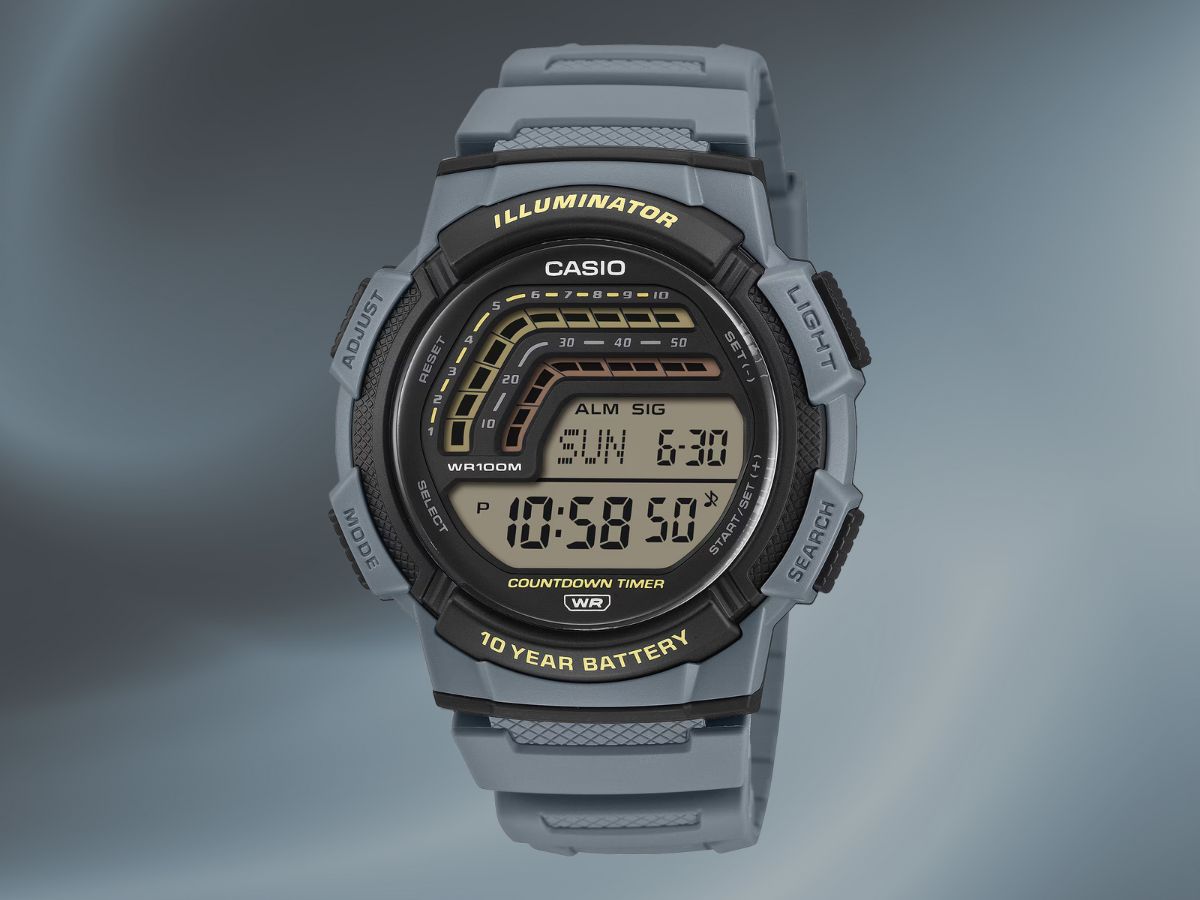 Casio WS1800 описываются как многофункциональные цифровые часы с "большим графическим дисплеем в ретро-стиле". В верхней части циферблата расположены две шкалы, которые, как утверждается, облегчают считывание показаний таймера обратного отсчета или секундомера. Под ними расположен более крупный дисплей со светлым фоном, на котором отображаются время, дата и число недели.