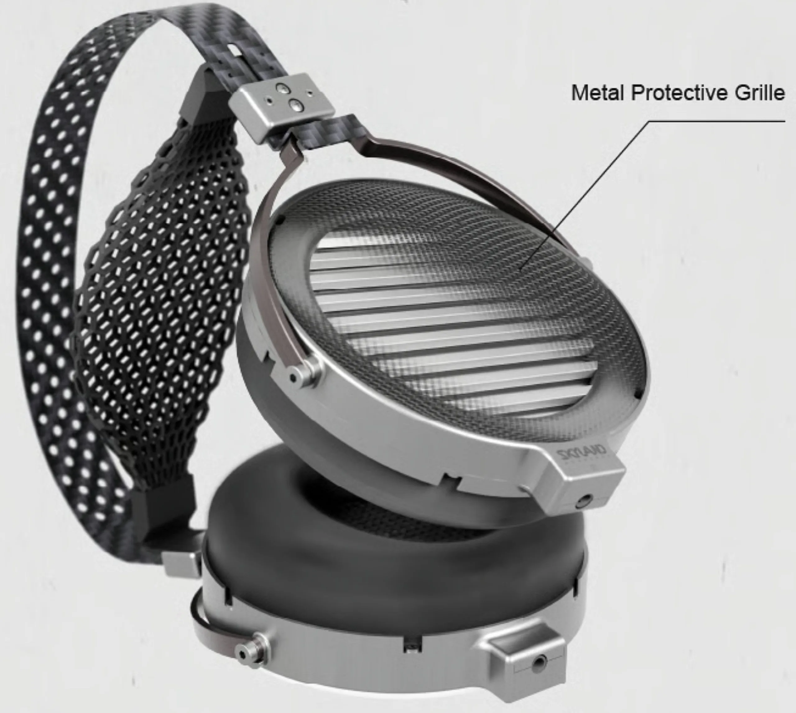 Динамики установлены в алюминиевых амбушюрах, обработанных на станках с ЧПУ, которые поставляются с мягкими амбушюрами из овчины и крепятся к прочному, гибкому оголовью из углеродного волокна с плавающей мягкой 3D-напечатанной подушечкой под оголовьем.