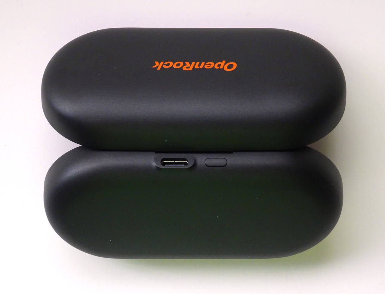 Наушники OpenRock Link 20 автоматически подзаряжаются, когда их помещают в зарядный футляр, который достаточно прочен, чтобы на него можно было сесть. Магниты надежно удерживают штангу микрофона и наушники, даже если открытый футляр держать вверх ногами. На передней части футляра находится световой индикатор уровня заряда, а на задней - порт USB-C и кнопка сопряжения Bluetooth/заводского сброса.
