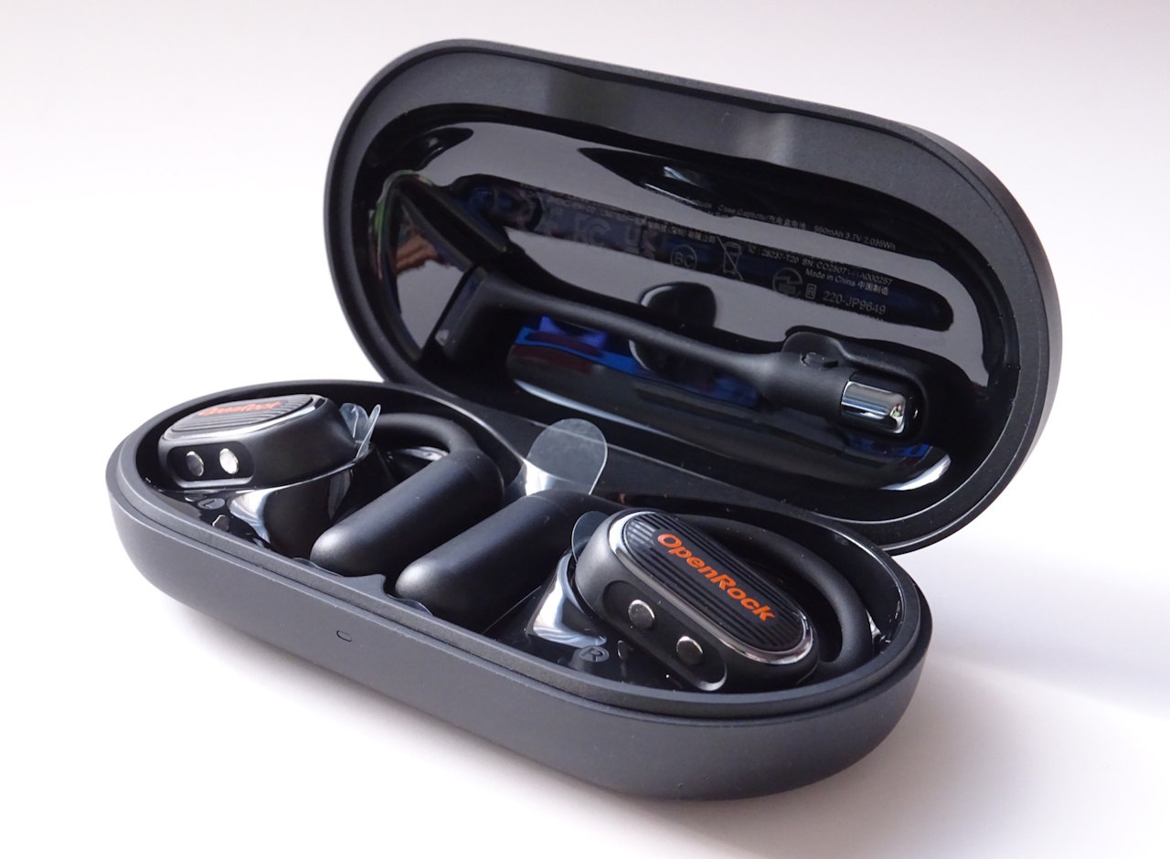 В комплект поставки входят наушники OpenRock Link 20, зарядный кейс, документация и кабель для зарядки USB-C. Дополнительное приложение для смартфона можно загрузить с сайта Apple App Store или Google Play Store.