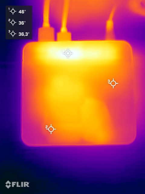 (-) Макс. температура дна составила 49.5 град. Цельсия. Типичное значение для устройств этого же класса = 36.5 градуса (-ов).