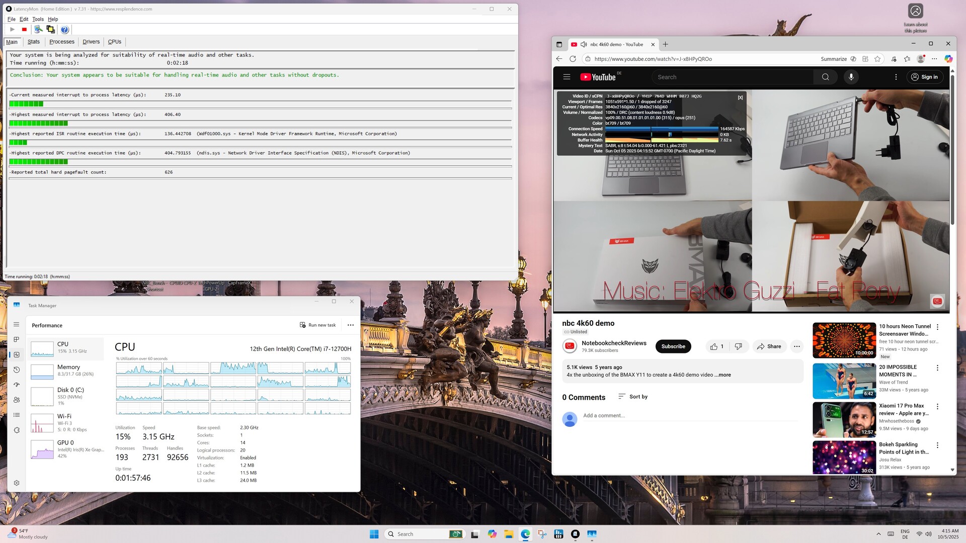 | DPC Latencies / LatencyMon - interrupt to process latency (max), Web, Youtube, Prime95 | |