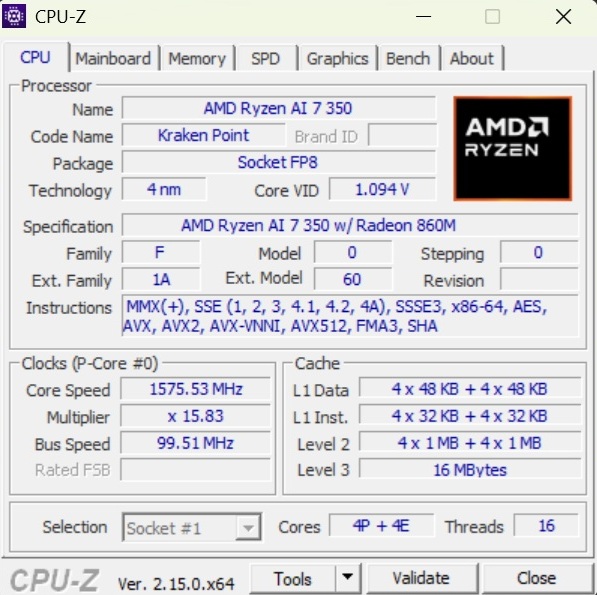 Ryzen AI 7 350 это восьмиядерный процессор, способный обрабатывать до 16 потоков одновременно через SMT. В цикле Cinebench 4 нм чип показал довольно стабильную производительность. Во всех бенчмарках старший XMG Core 15's Ryzen 7 8845HS был немного быстрее, в то время как Legion 5 Ryzen 7 260 показал примерно одинаковые результаты.