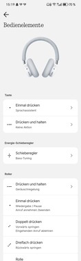 Аппаратные элементы управления интуитивно понятны и просты в использовании: На правой амбушюре находится тактильный диск для регулировки громкости/воспроизведения/паузы (поворот/протирание). На левом наушнике расположены кнопка питания и ползунок усиления басов. Расширение приложения блещет эквалайзерами, персонализированными звуковыми кривыми и уведомлениями об обновлениях. Здесь также есть кнопка для активации голосового помощника.