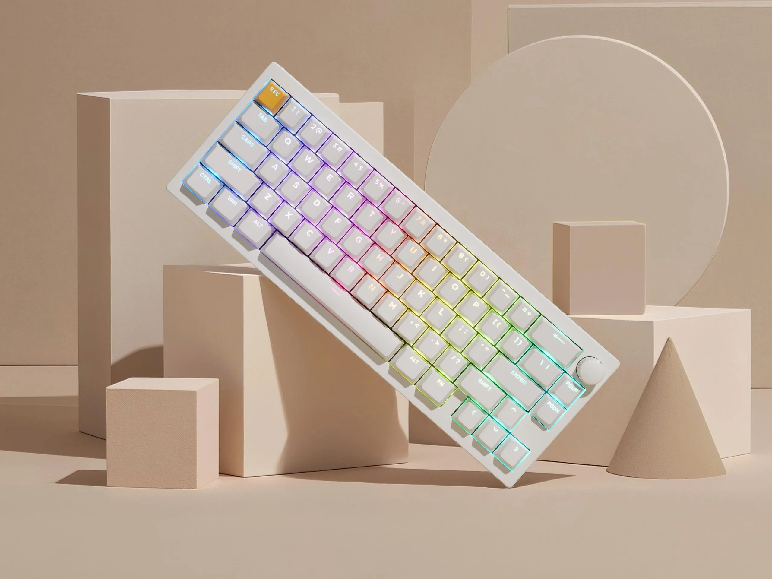 Lemokey P2 HE имеет компактную раскладку 65%, с настраиваемым регулятором громкости, хотя между клавишами-модификаторами нижнего ряда и блоком стрелок есть некоторое расстояние, поэтому привыкнуть к ней, скорее всего, будет легче, чем к правильной компактной раскладке, с которой мы боролись в нашем Обзор Lofree Flow Lite. Еще одной изюминкой P2 HE является то, что она оснащена знакомыми по профилю Cherry колпачками, изготовленными из PBT с двойным отпечатком. Lemokey предлагает P2 HE в черном и белом цветовых вариантах, и в обоих вариантах есть возможность установки прозрачных колпачков, которые хорошо сочетаются с северной RGB-подсветкой каждой клавиши.
