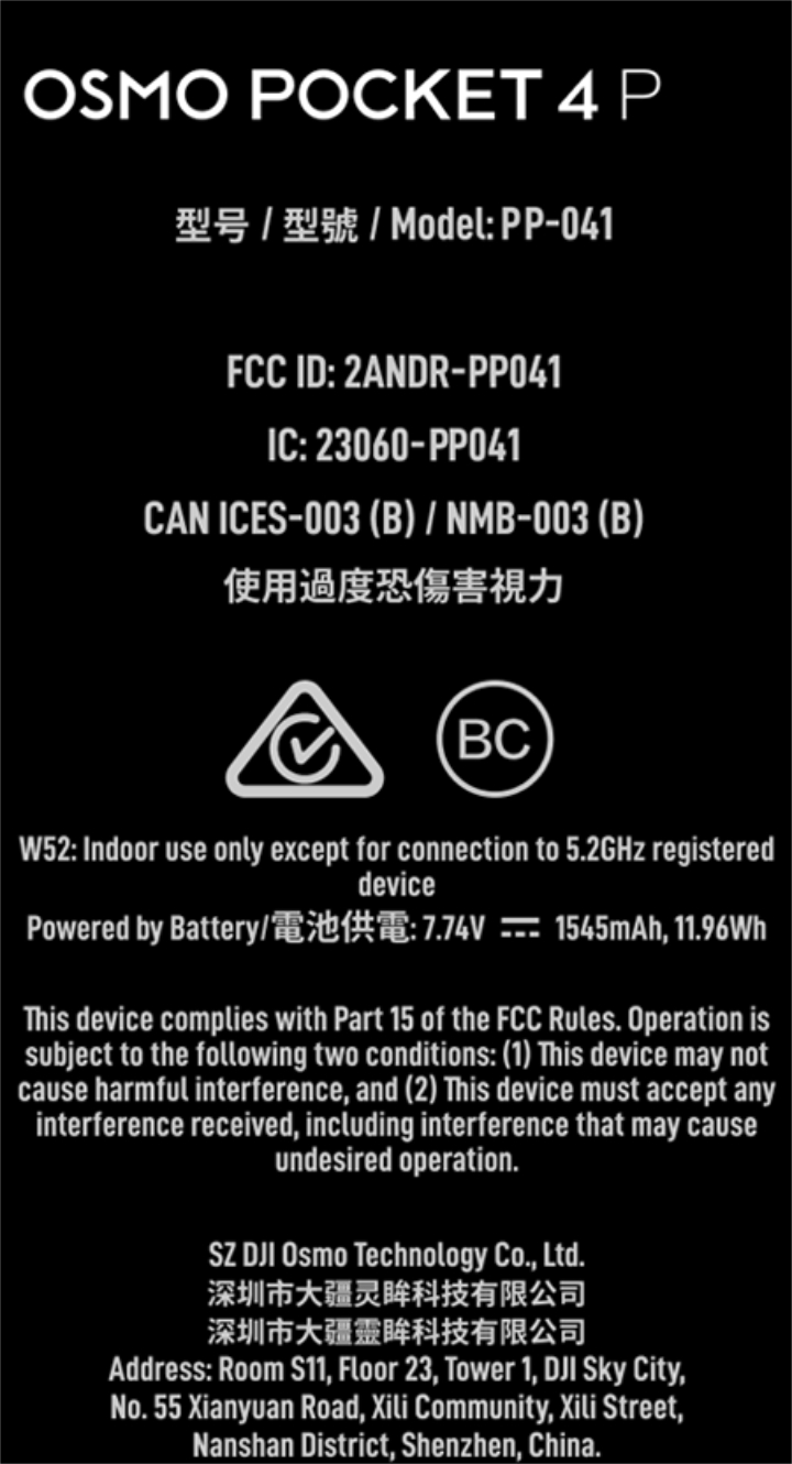 FCC пока не раскрыла, как выглядит Osmo Pocket 4 Pro. Вместо этого регулирующий орган согласился воздержаться от публикации каких-либо фотографий до конца июня 2026 года. Тем временем FCC подтвердила, что в Osmo Pocket 4 Pro используется аккумулятор емкостью 1 545 мАч (7,7 В). Хотя это значительное обновление по сравнению с батареей емкостью 1 300 мАч, установленной в Osmo Pocket 3но эта емкость соответствует Osmo Pocket 4. Тем не менее, сертификация FCC практически подтверждает, что DJI выпустит Osmo Pocket 4 Pro во всем мире.