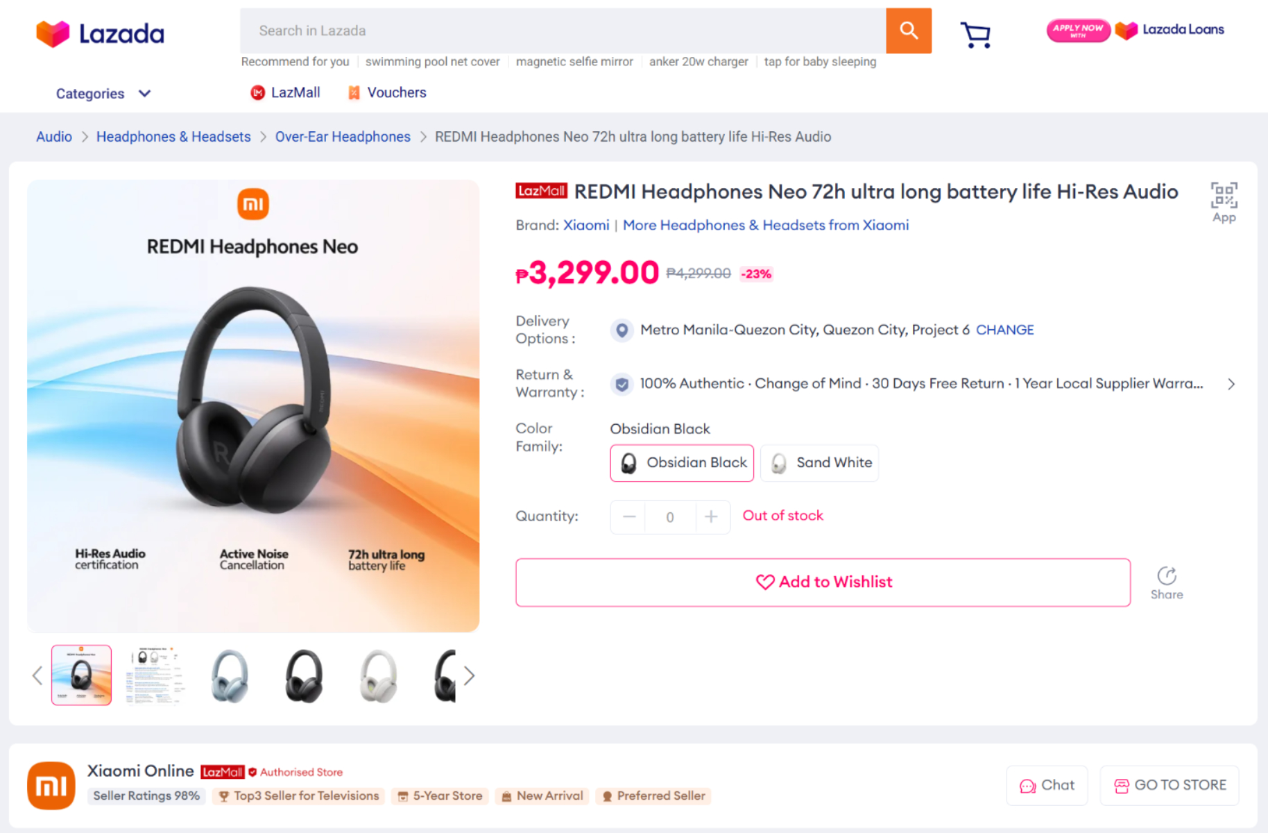 Xiaomi первоначально выпустит Redmi Headphones Neo в цветах Obsidian Black и Sand White. Как показано на изображениях ниже, Lazada установила цену на Redmi Headphones Neo в размере PHP 3 299 (~$55) на Филиппинах, со скидкой с PHP 4 299 (~$70). Тем временем Diglex Electronics выставил эти же наушники на продажу по цене $36,70, но с минимальным количеством заказа в 100 штук.