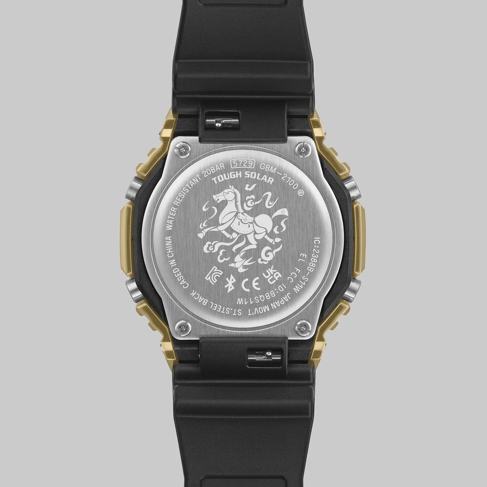 Casio сейчас официально открыты предварительные заказы на новую модель G-Shock, построенную на полюбившейся платформе GA-B2100 ("CasiOak"), которая значится как GBM-2100CX-9AJR. Эта модель входит в специальное новогоднее издание 2026 года, посвященное зодиакальному году Лошади, и имеет безель золотого цвета с гравировкой и соответствующими акцентами по всему циферблату. Предварительные заказы уже открыты в японском онлайн-магазине G-Shock, а доставка запланирована на декабрь 2025 года. Цена часов составляет ¥42 900 (с учетом налогов), что примерно равно $285 USD.