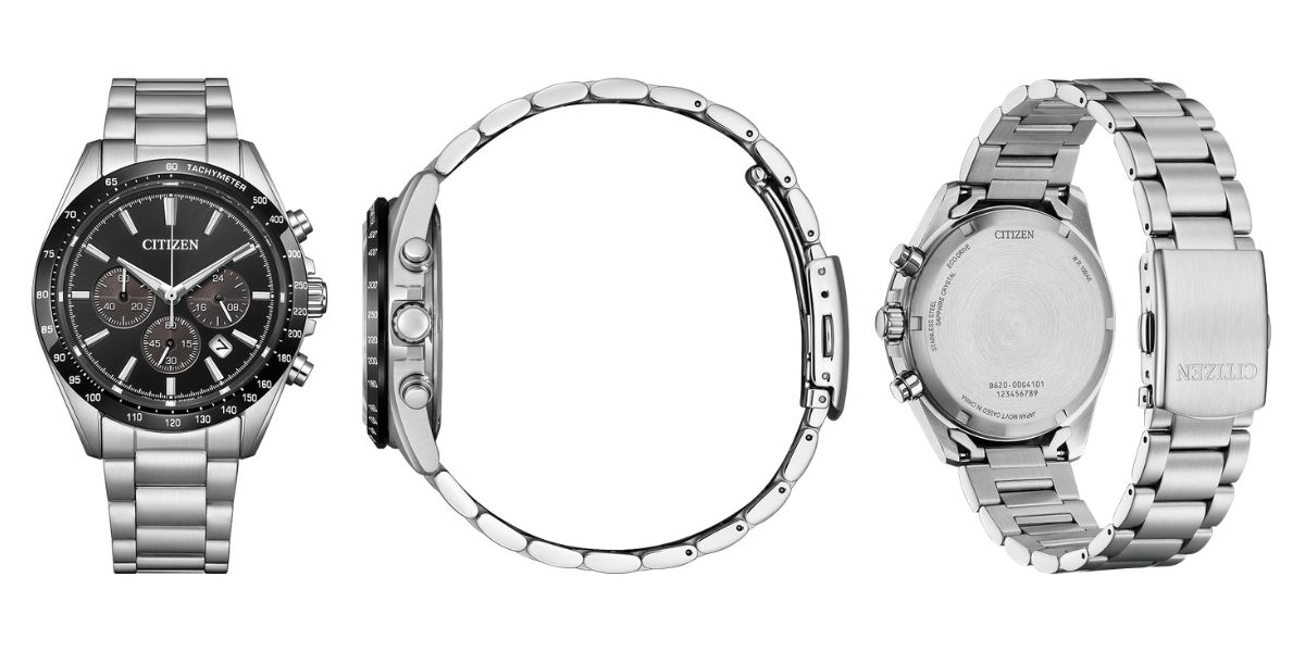 Эти хронографы Citizen Collection Eco-Drive работают на свету благодаря калибру B620. Особенности дизайна включают широкий безель, короткие ушки, тахиметрический безель и сапфировое стекло. Имеется три индикатора, один из которых показывает время в 24-часовом формате, а два связаны с секундомером. Кроме того, эти аналоговые часы имеют три стрелки и основной указатель даты между позициями "4 часа" и "5 часов". По заявлению Citizen, часы должны сохранять точность хода с точностью до 15 секунд ежемесячно.