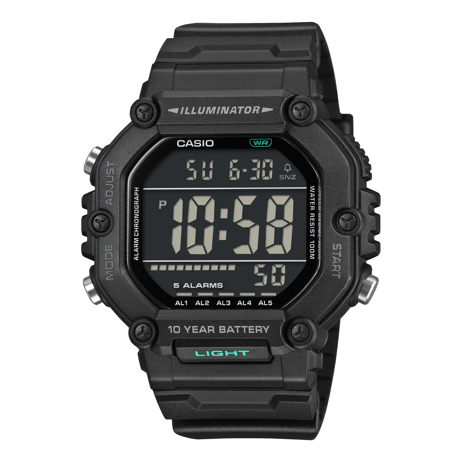 Главным преимуществом серии AE-1600HX, скорее всего, будет заявленный 10-летний срок службы батареи, благодаря элементу CR2032. Часы также обладают 100-метровой водонепроницаемостью, что уже приближает их к типичным спортивным часам начального уровня от Casio. Кроме того, модель AE-1600HX-1BV оснащена негативным дисплеем - полностью черный дизайн обычно более популярен среди покупателей.