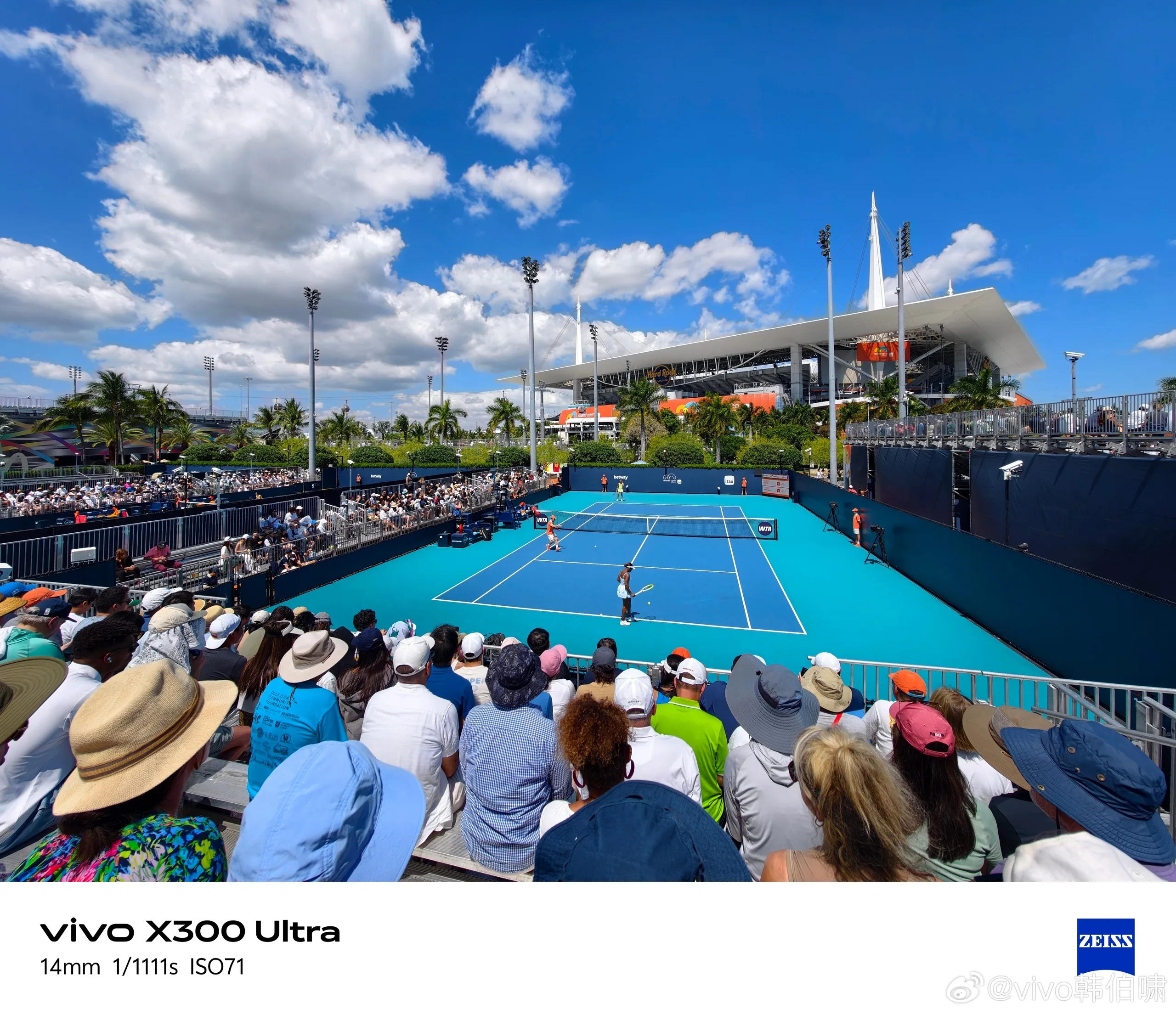 После того, как Вы увидели впечатляющие концертные фотографии, сделанные с помощью 400-мм телеконвертера, Vivo X300 Ultra также использовался на турнире Miami Open, где один из игроков был сфотографирован с расстояния с помощью оптического телеобъектива