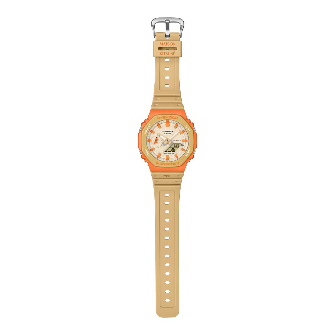 GA-2110MK - это аналогово-цифровые часы, созданные на основе дико популярной серии GA-2100 с восьмигранными корпусами. Часы выполнены в цветовой гамме "camaieu" с использованием нейтральных, землисто-бежевых и кремовых тонов, вдохновленных исторической архитектурой Парижа Haussmannian. Приглушенные тона подчеркиваются резким ободком из оранжевой смолы, который, по словам Casio, призван напоминать о закате, сияющем над парижским горизонтом. Часы поставляются в специальной упаковке, которая соответствует цветовой гамме Camaieu.
