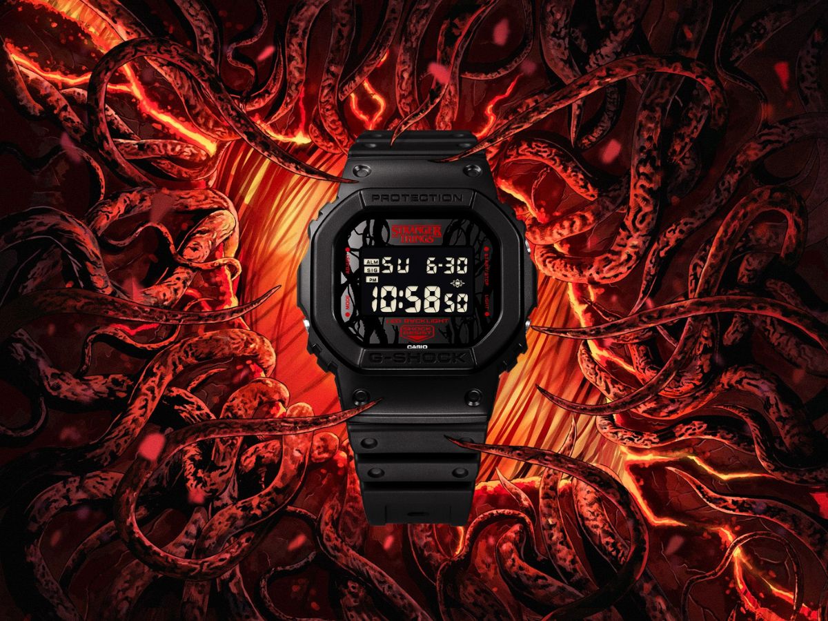 После выхода 5-го сезона телесериала несколько недель назад в Великобритании появились в продаже двое часов Casio Stranger Things. Эти часы специального выпуска, Vintage AQ-800EST-1A и G-Shock DW-5600STT-1уже были выпущены в других европейских странах например, в Германии, где они уже распроданы.