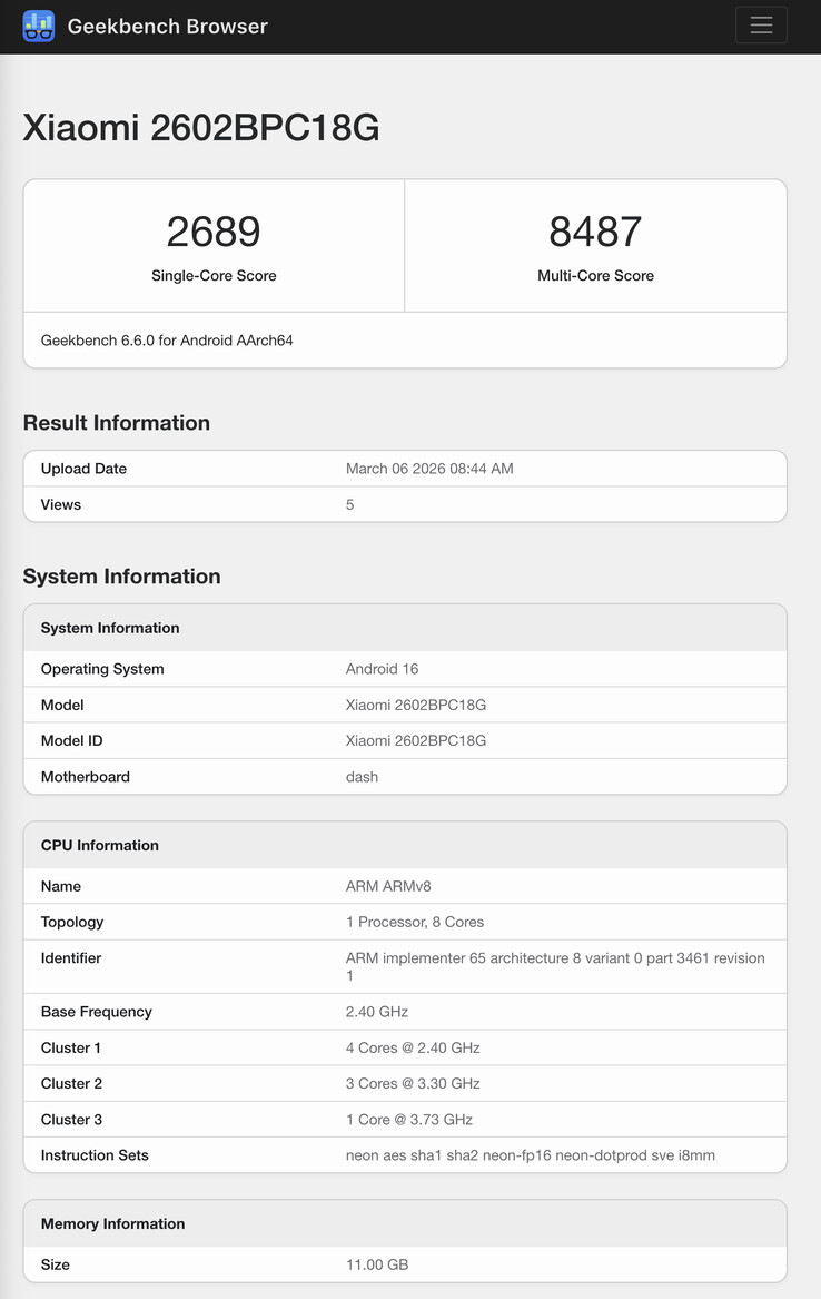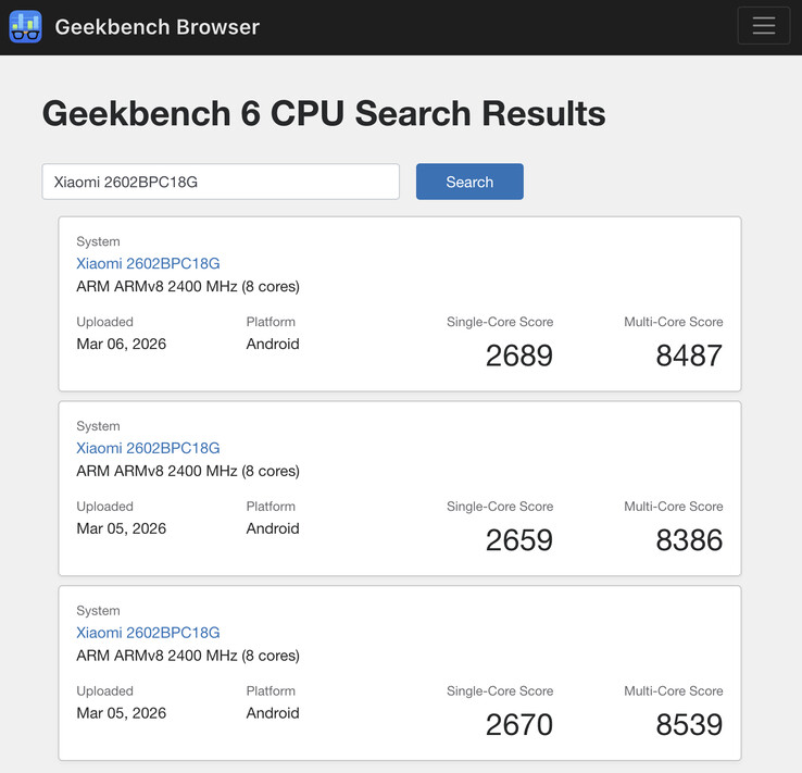 Теперь последний вариант появился в нескольких ранних бенчмарках. Все они обозначаются как Xiaomi 2602BPC18G, номер модели '2602BPC18G' уже был связан с розничным названием "Poco X8 Pro Max". С одной стороны, листинги подтверждают, что Xiaomi планирует продавать Poco X8 Pro Max с 12 ГБ оперативной памяти.