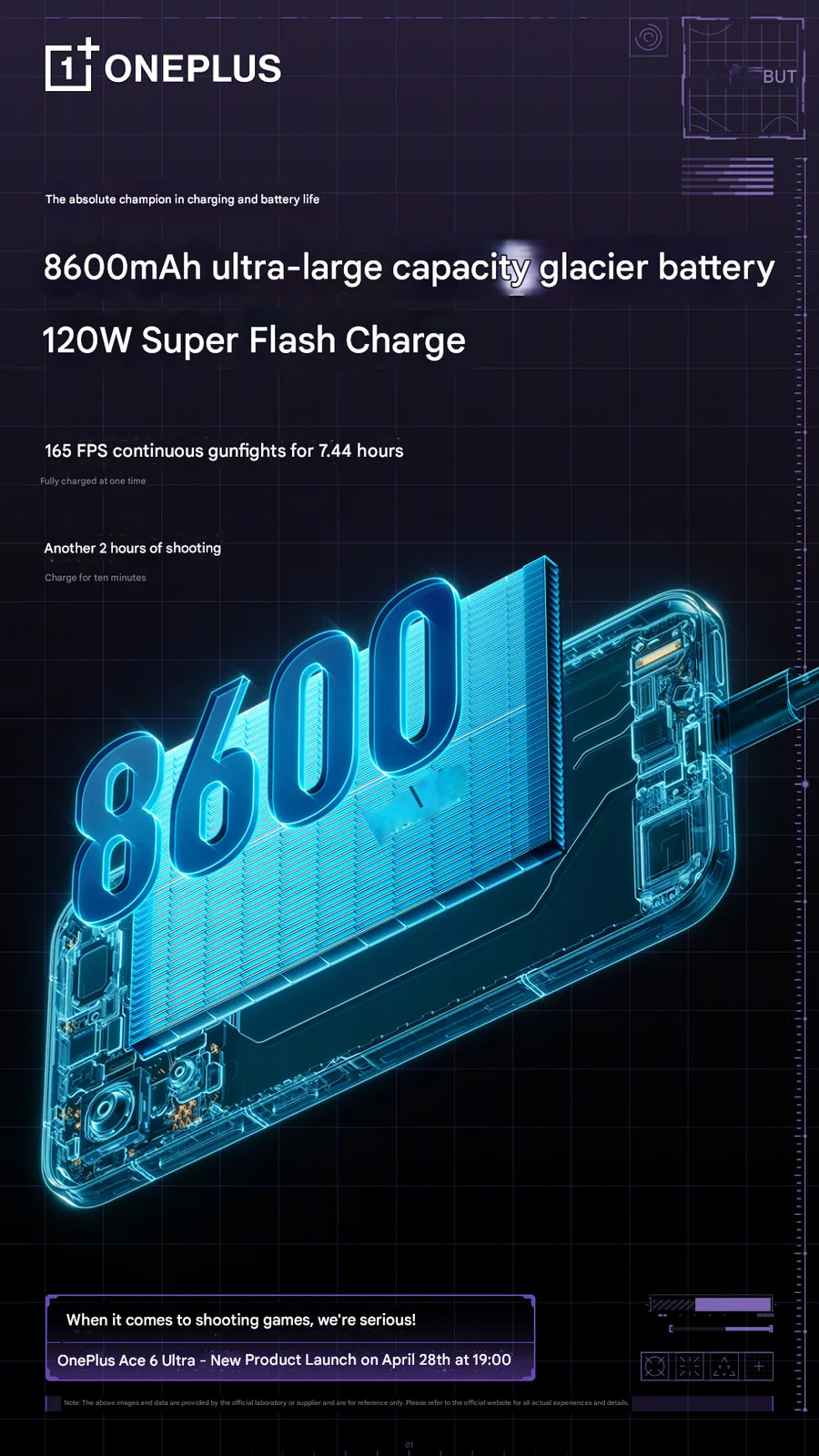 Теперь стали известны и другие характеристики телефона, и, похоже, OnePlus удвоит свои усилия в отношении батареи и возможностей подключения. Теперь подтверждено, что Ace 6 Ultra будет оснащен батареей емкостью 8 600 мАч, что немного больше, чем в redmi K90 Maxи, как утверждается, обеспечит до 7 часов игры.