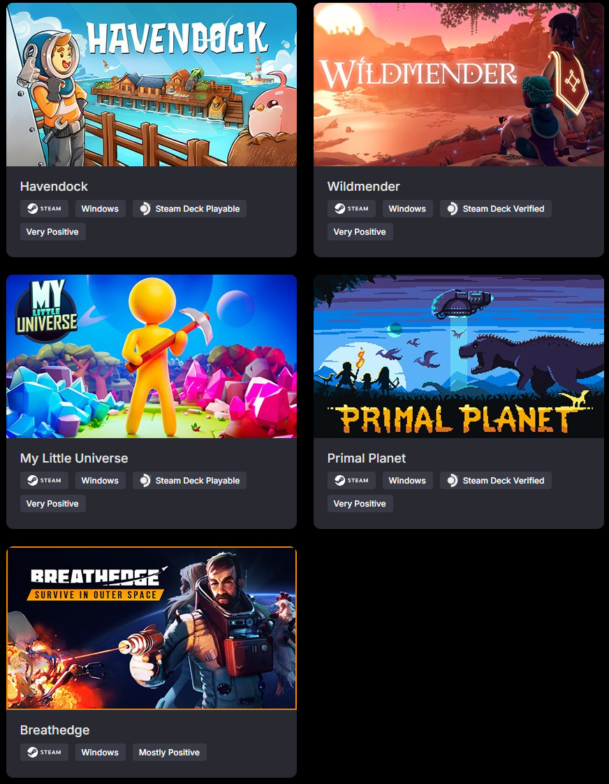 - Wildmender - отнесенная к категории Steam Deck Verified, это хорошо оцененная садоводческая игра с элементами выживания. Ее розничная цена составляет $24,99, а исторический минимум - $9,99.