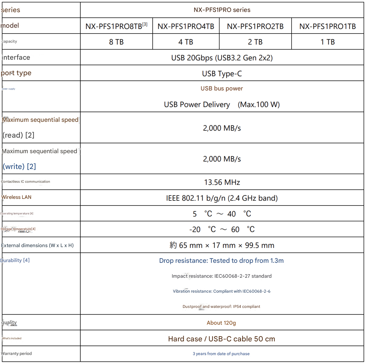Nextorage NX-PFS1PRO был официально представлен в Японии. Это новый портативный SSD, который можно приобрести с объемом памяти до 8 ТБ. Независимо от выбранной емкости, скорость передачи данных накопителя составляет 20 Гбит/с через интерфейс USB 3.2 Gen 2x2 Type-C.
