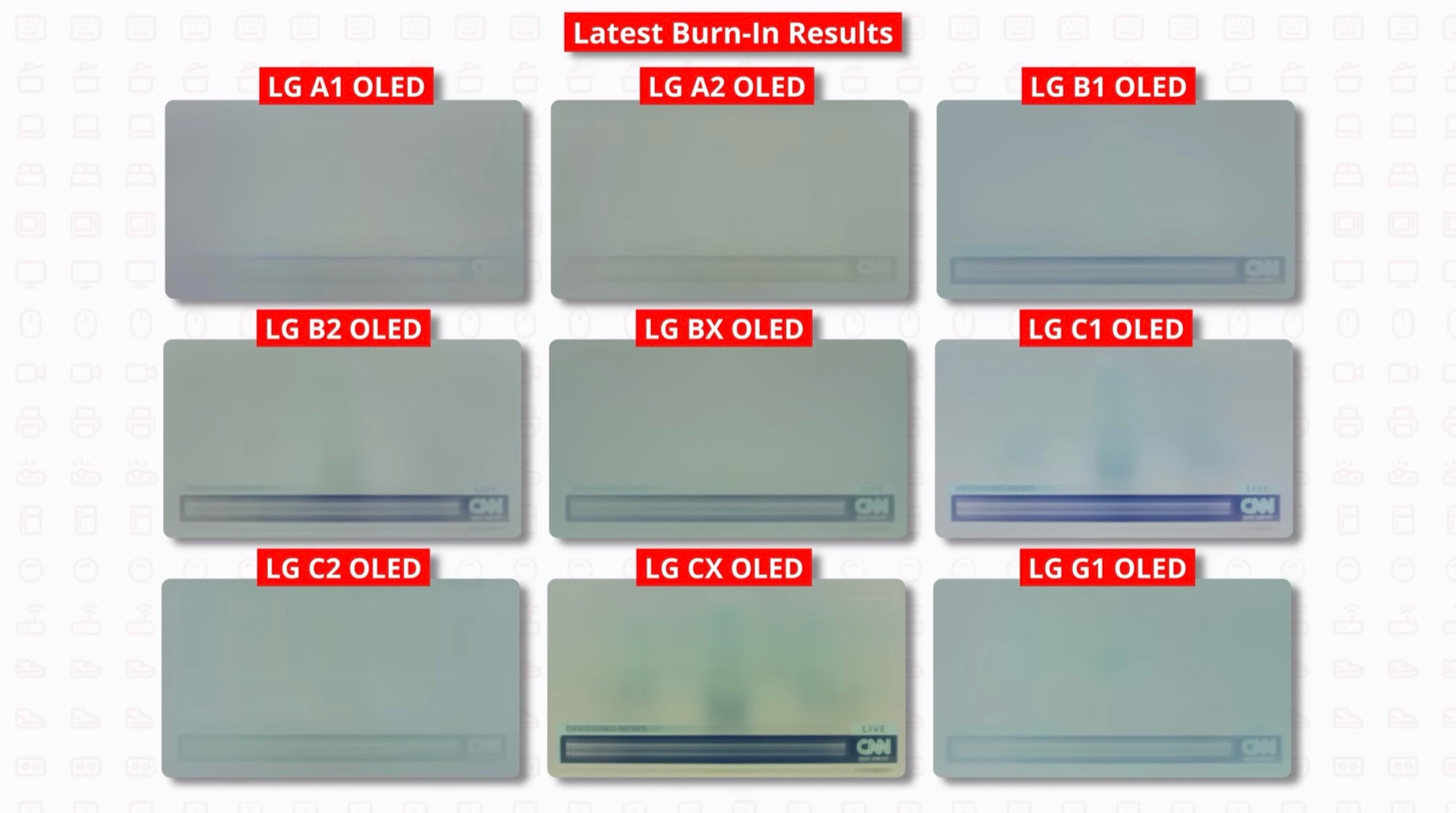 Rtings запустила 102 телевизора на максимальной яркости в течение 3 лет, показывая новостной канал, который постоянно отображает бегущую строку новостей внизу, для проверки на выгорание. Как и ожидалось, выгорание остается проблемой, но ЖК-телевизоры также сталкиваются с серьезными проблемами после 18 000 часов использования.