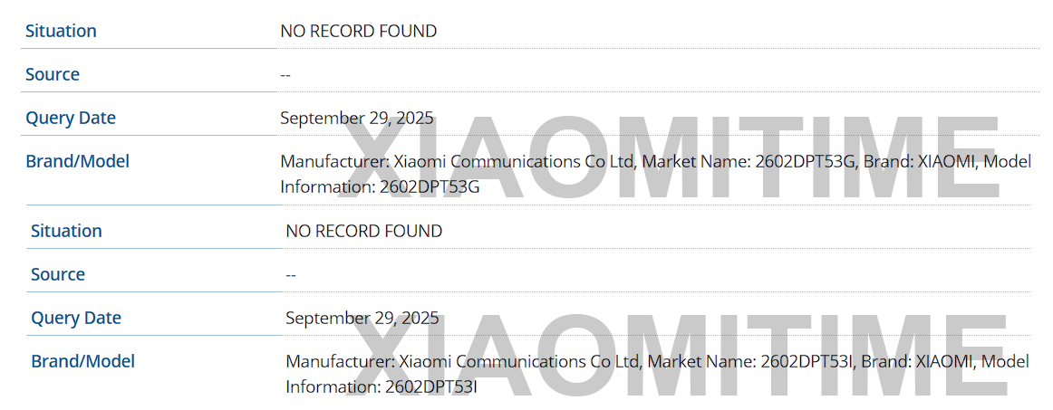 А именно, в базах данных IMEI появились два еще не выпущенных смартфона Xiaomi. Имея модельные номера 2602DPT53G и 2602DPT53I, эта пара относится к одному и тому же базовому устройству. На данный момент, по крайней мере, не обнаружено ни одной эквивалентной китайской модели. Однако суффиксы G и I указывают на то, что Xiaomi будет выпускать "2602DPT53" как в Индии, так и по всему миру.