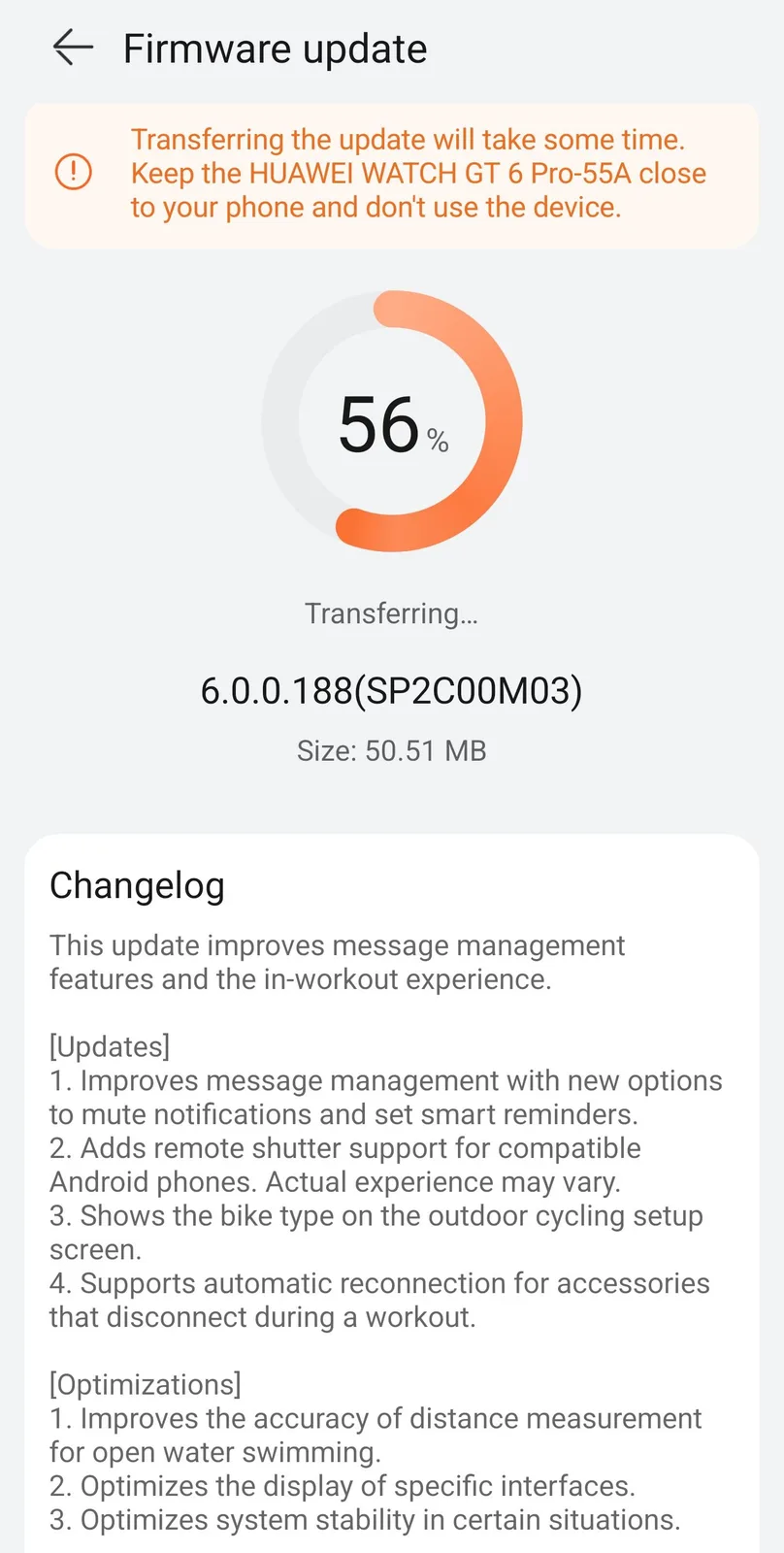 Компания Huawei выпустила новое обновление для Watch GT 6 и Watch GT 6 Pro смарт-часов. Предыдущий выпуск, версия 6.0.0.173вышла для пользователей по всему миру в конце 2025 года. Теперь о версии HarmonyOS 6.0.0.188 сообщили пользователи в Китае https://www.ithome.com/0/921/483.htm и других стран.