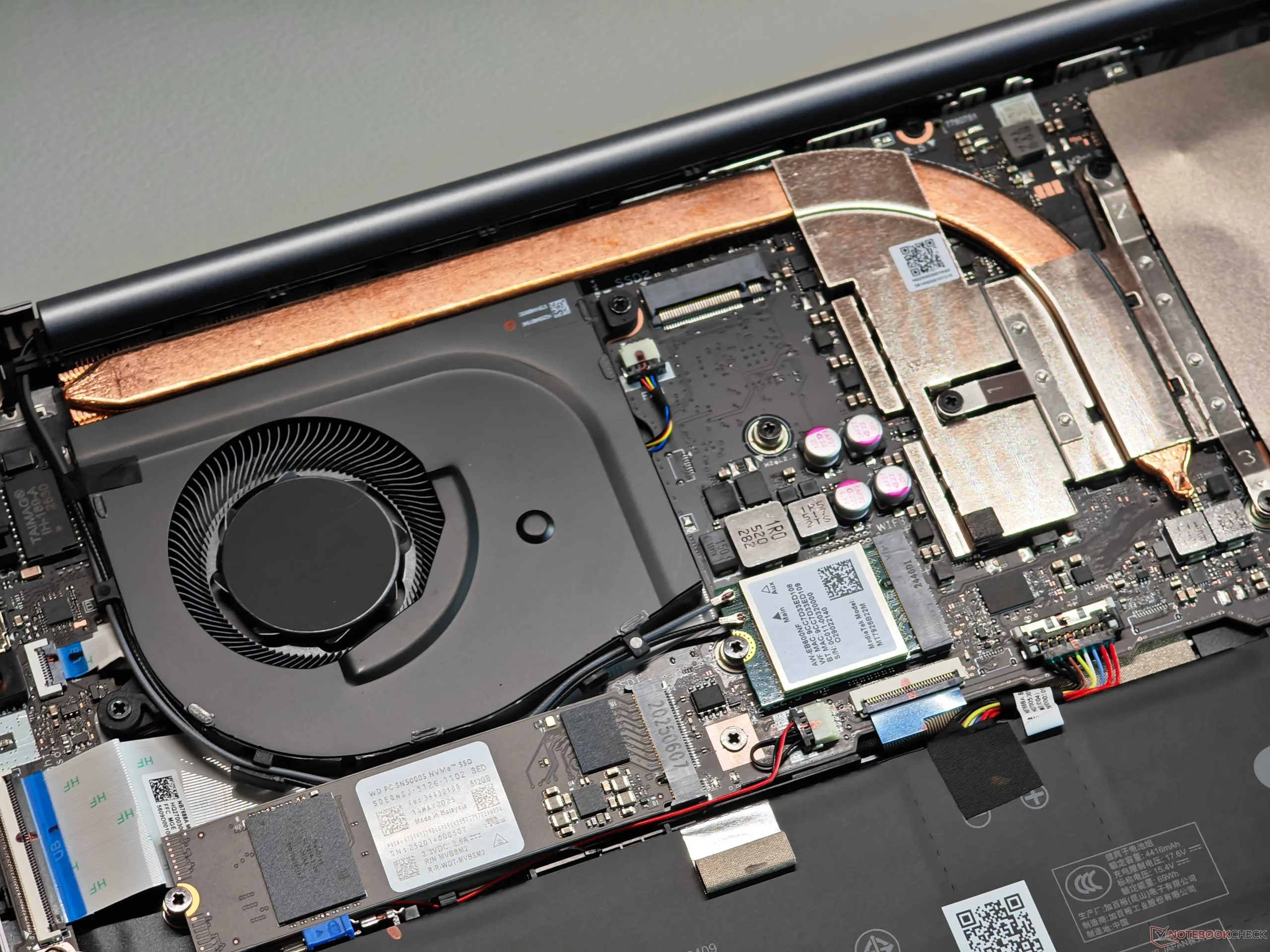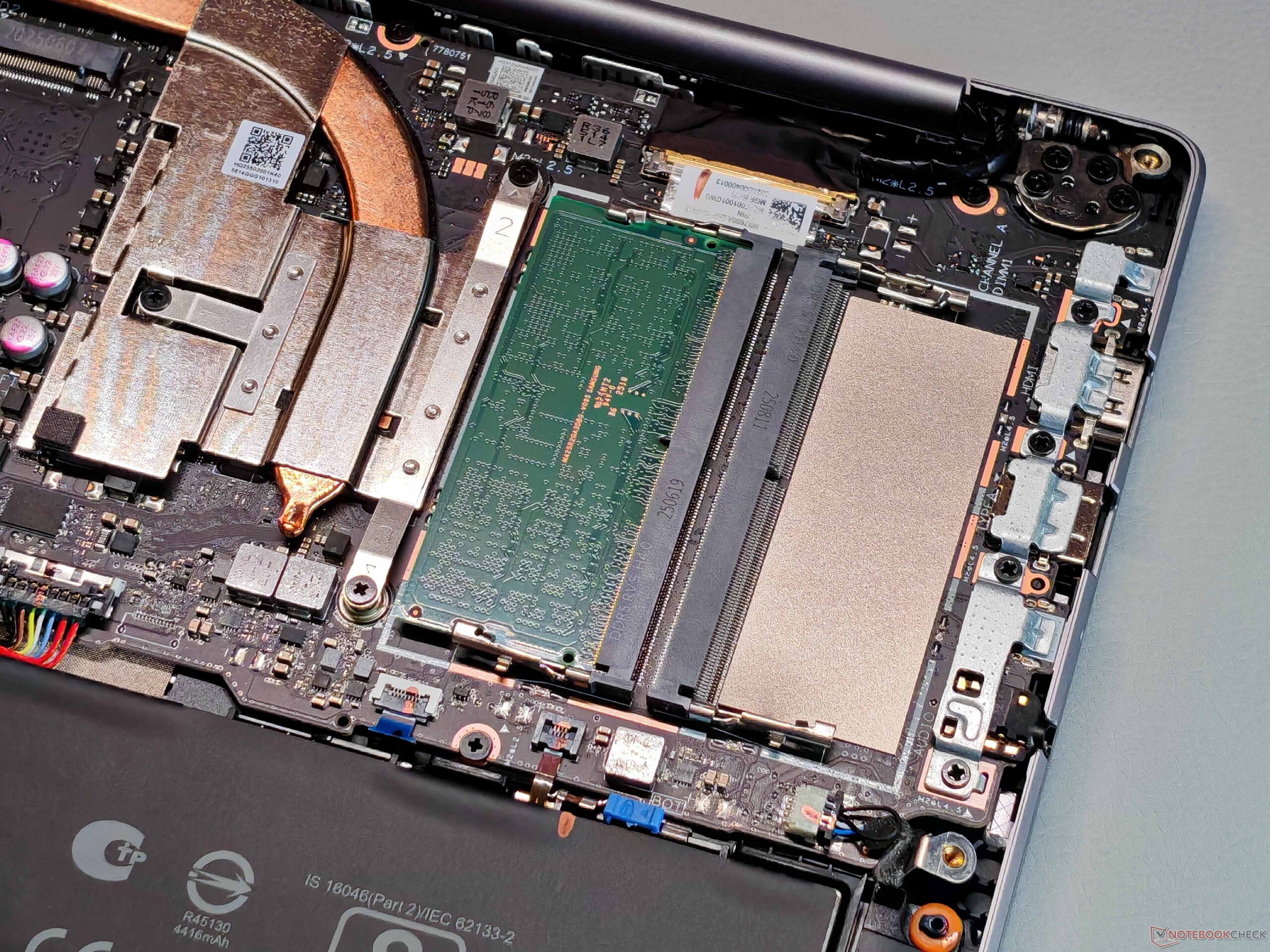 Крышка открывается на максимальный угол 180°, и нет никаких проблем ни с устойчивостью, ни с качеством изготовления. Ноутбук предлагает хорошие возможности модернизации, включая 2x SO-DIMM, 2x SSD и WLAN.