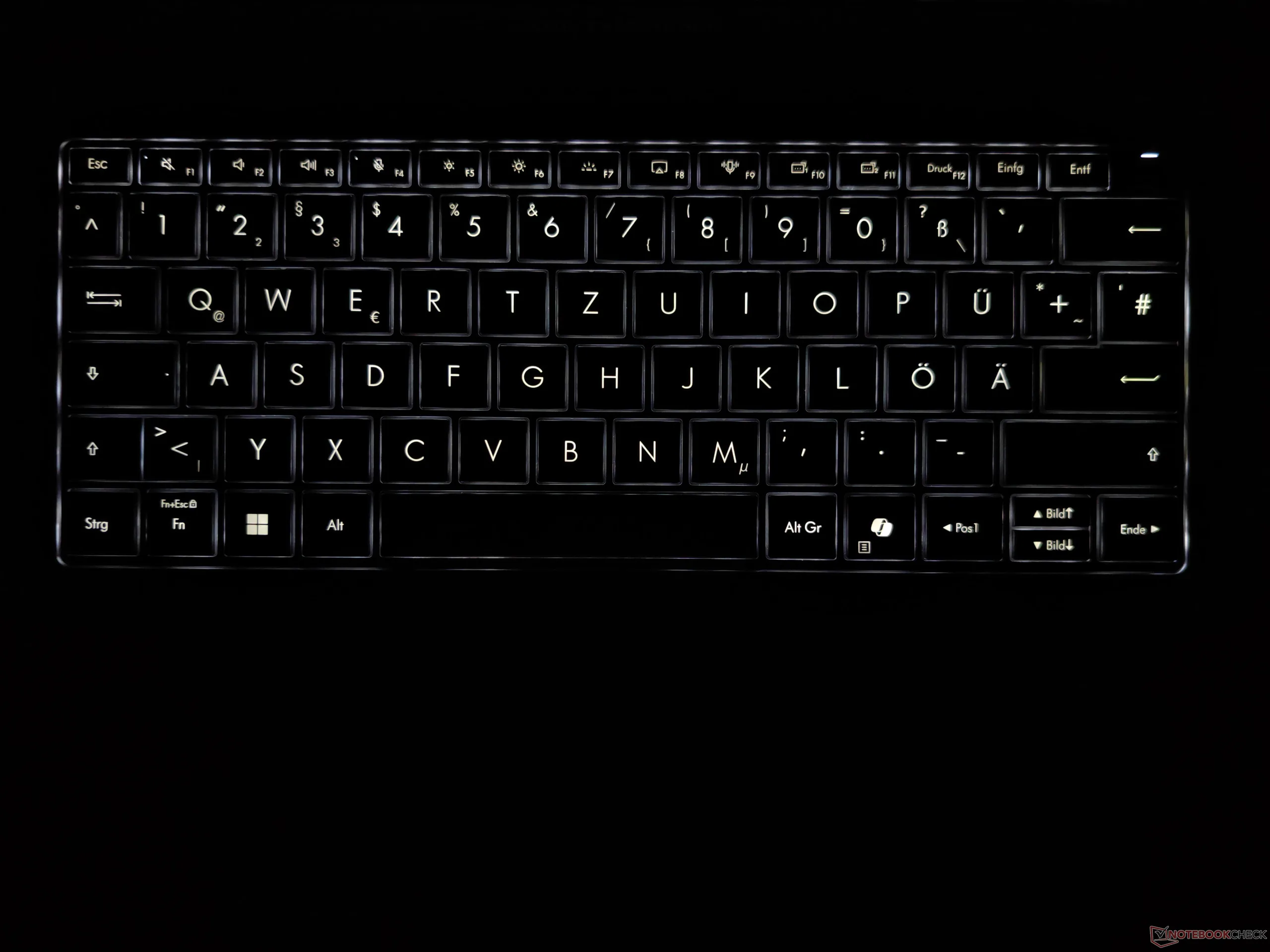 Клавиатура с черными колпачками клавиш подсвечивается и обеспечивает очень комфортный набор текста благодаря большому ходу и точному ходу. Однако нажатие клавиш могло бы быть немного тише.