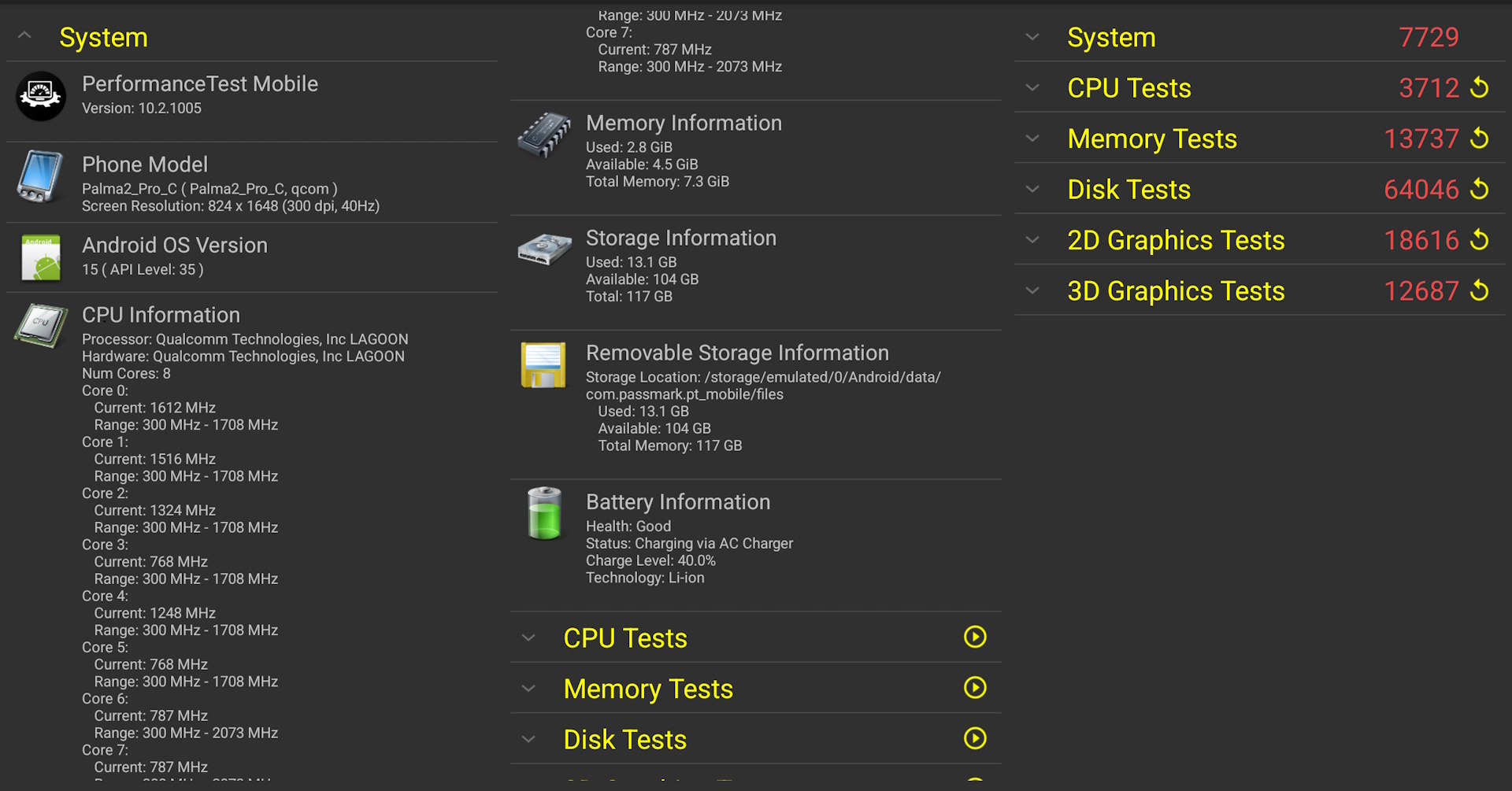 Бенчмарки PassMark показывают, что производительность сопоставима с Samsung S10 или A52.