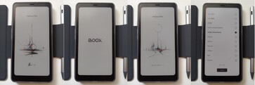 Boox похож на смартфон, с матовым E Ink Kaleido 3 сенсорным экраном для чтения без бликов, двойным микрофоном и стереодинамиками. Физические элементы управления включают в себя кнопку питания на правом краю, а также смарт-кнопки и кнопки регулировки громкости на левом. На задней панели расположена 16 МП камера со вспышкой.