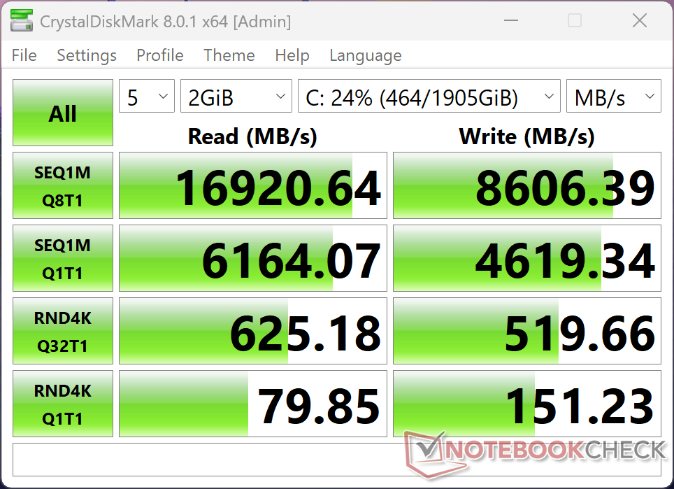 | Dell Pro Max 16 Plus Ultra 9 285HX, RTX PRO 5000 Blackwell Generation Laptop, SK hynix PCB01 HFS001TFM9X186N, OLED, 3840x2400, 16" | Dell Precision 5690 Ultra 9 185H, RTX 5000 Ada Generation Laptop, 2x Samsung PM9A1 1TB (RAID 0), OLED, 3840x2400, 16" | Dell Precision 5000 5680 i9-13900H, RTX 5000 Ada Generation Laptop, 2x SK hynix PC801 HFS512GEJ9X101N RAID 0, OLED, 3840x2400, 16" | Lenovo ThinkPad P16 Gen 2 i7-14700HX, RTX 4000 Ada Generation Laptop, SK hynix PC801 HFS001TEJ9X162N, IPS, 2560x1600, 16" | Lenovo ThinkPad P1 Gen 7 21KV001SGE Ultra 7 155H, GeForce RTX 4060 Laptop GPU, Kioxia XG8 KXG8AZNV1T02, IPS LED, 2560x1600, 16" | HP ZBook Studio 16 G11 Ultra 9 185H, RTX 3000 Ada Generation Laptop, Kioxia XG8 KXG80ZNV1T02, IPS, 3840x2400, 16" | MSI CreatorPro Z16P B12UKST i7-12700H, RTX A3000 Laptop GPU, Samsung PM9A1 MZVL21T0HCLR, IPS, 2560x1600, 16" | |