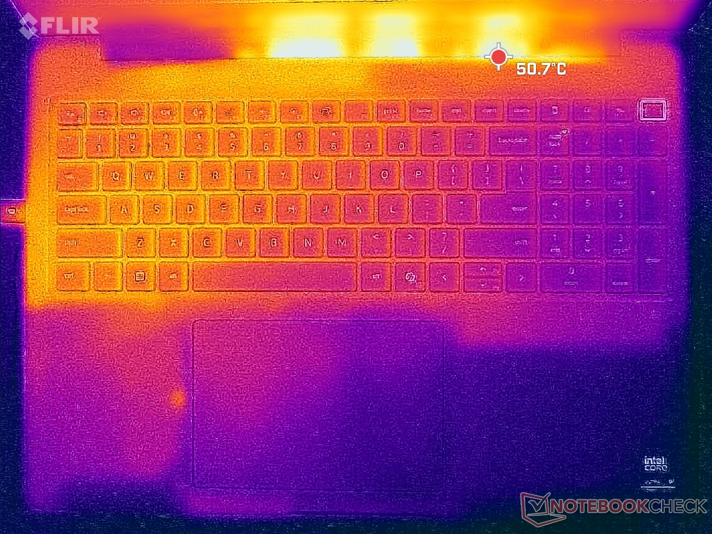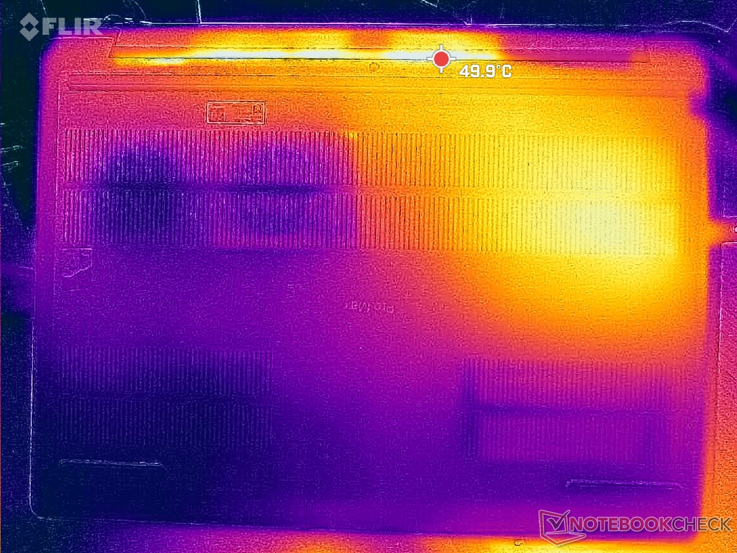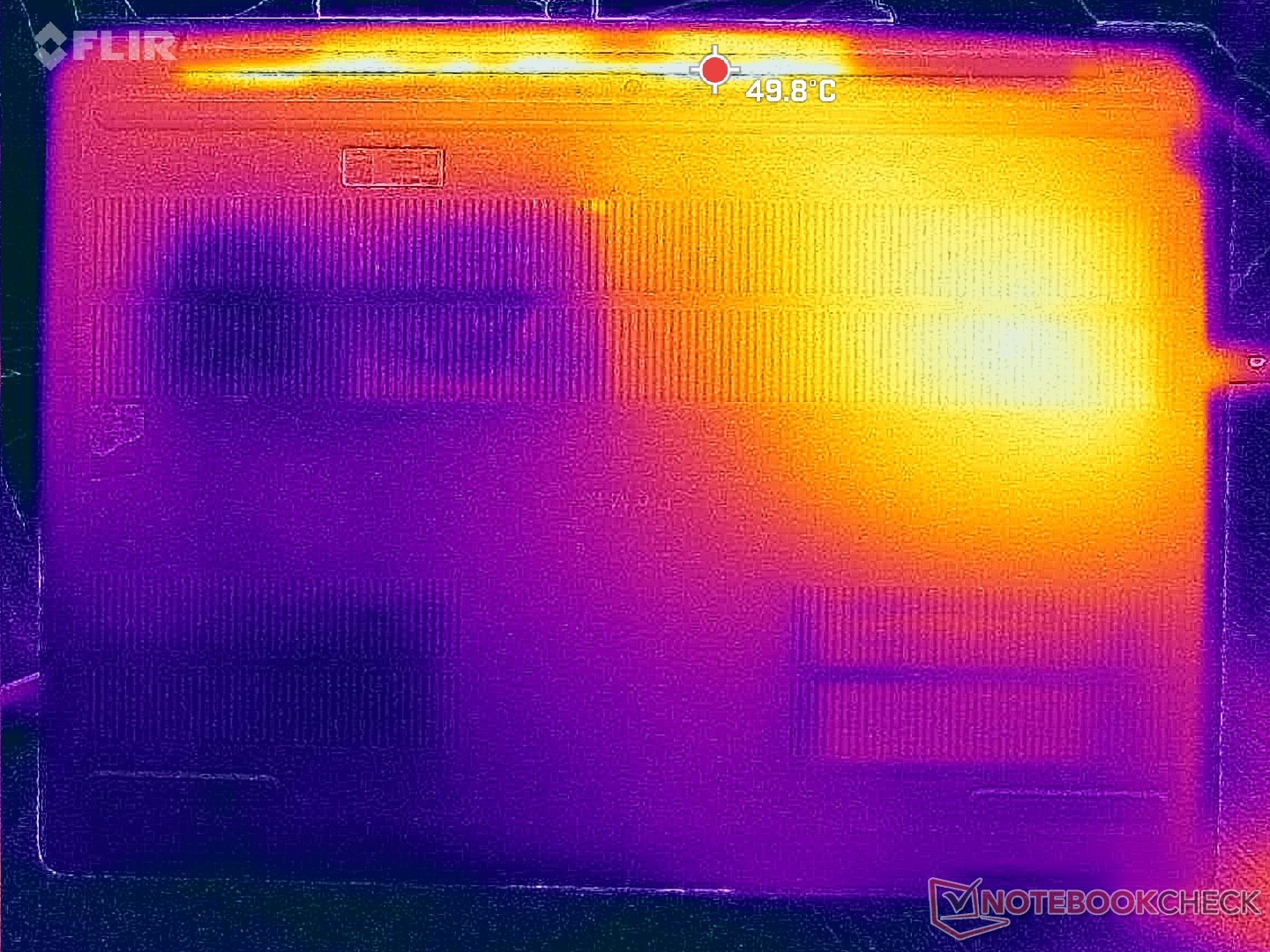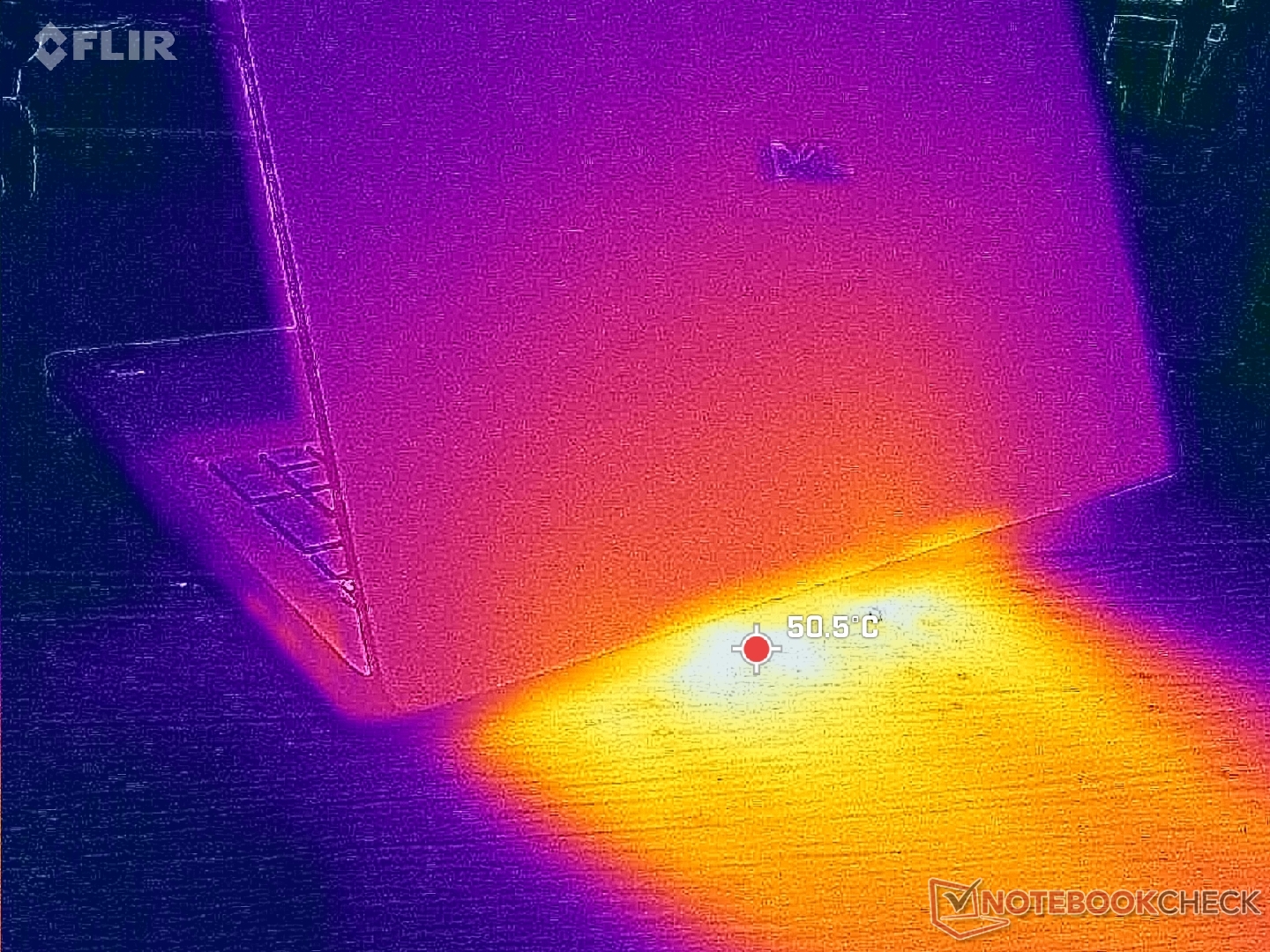 Температура поверхности почти всегда теплая, независимо от экранной нагрузки, вероятно, из-за вялых вентиляторов и высокопроизводительных деталей. Левая половина корпуса заметно теплее правой из-за асимметричного решения охлаждения.