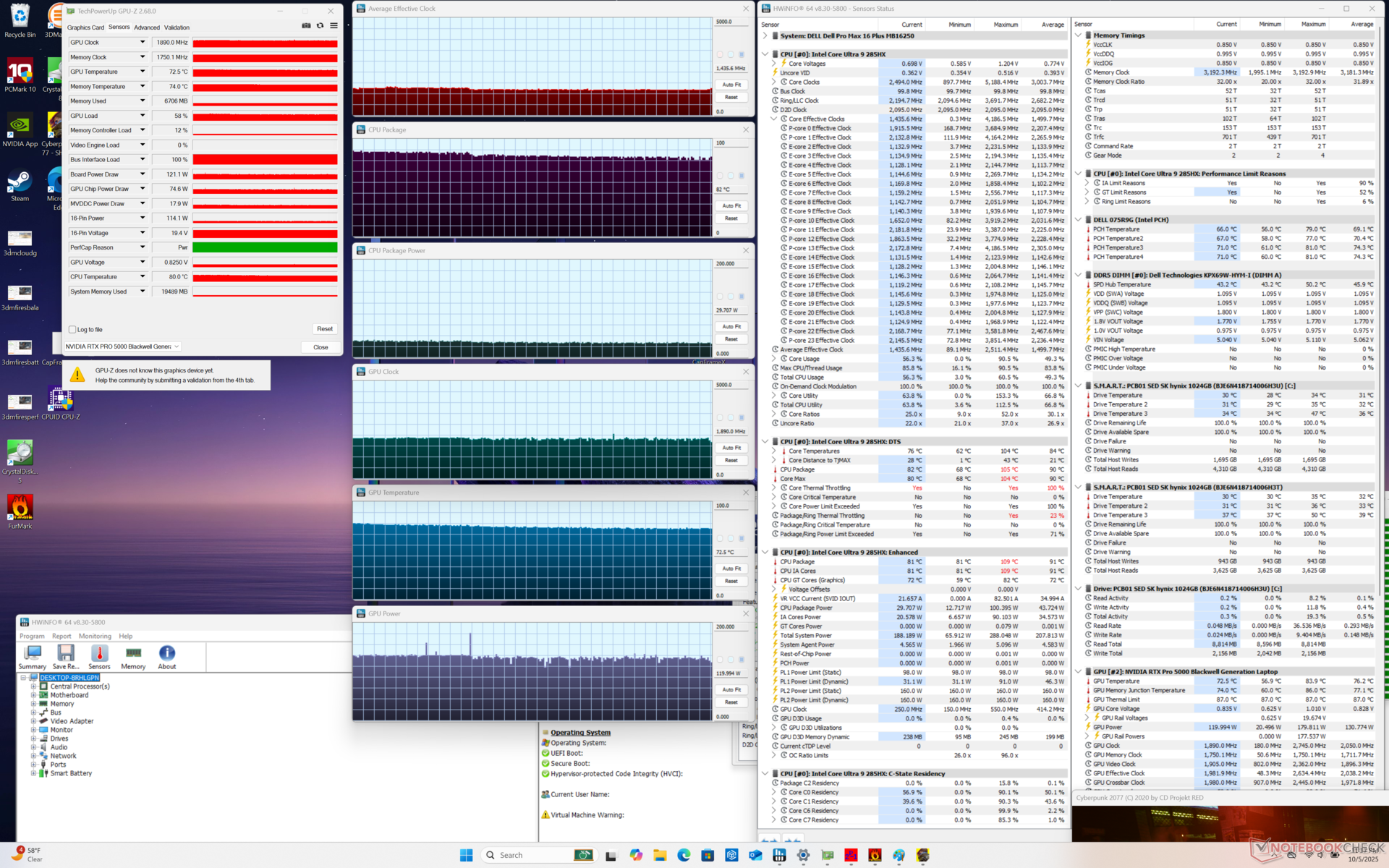 | Dell Pro Max 16 Plus Intel Core Ultra 9 285HX, Nvidia RTX PRO 5000 Blackwell Generation Laptop | Dell Precision 5690 Intel Core Ultra 9 185H, Nvidia RTX 5000 Ada Generation Laptop | Dell Precision 5000 5680 Intel Core i9-13900H, Nvidia RTX 5000 Ada Generation Laptop | Lenovo ThinkPad P16 Gen 2 Intel Core i7-14700HX, NVIDIA RTX 4000 Ada Generation Laptop | Lenovo ThinkPad P1 Gen 7 21KV001SGE Intel Core Ultra 7 155H, NVIDIA GeForce RTX 4060 Laptop GPU | HP ZBook Studio 16 G11 Intel Core Ultra 9 185H, NVIDIA RTX 3000 Ada Generation Laptop | MSI CreatorPro Z16P B12UKST Intel Core i7-12700H, NVIDIA RTX A3000 Laptop GPU | |